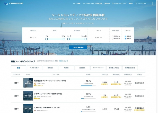 ソーシャルレンディングファンドを事業者横断比較できるサイト「クラウドポート」