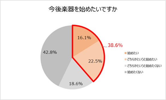 3人に1人以上は今後楽器を始めたい。