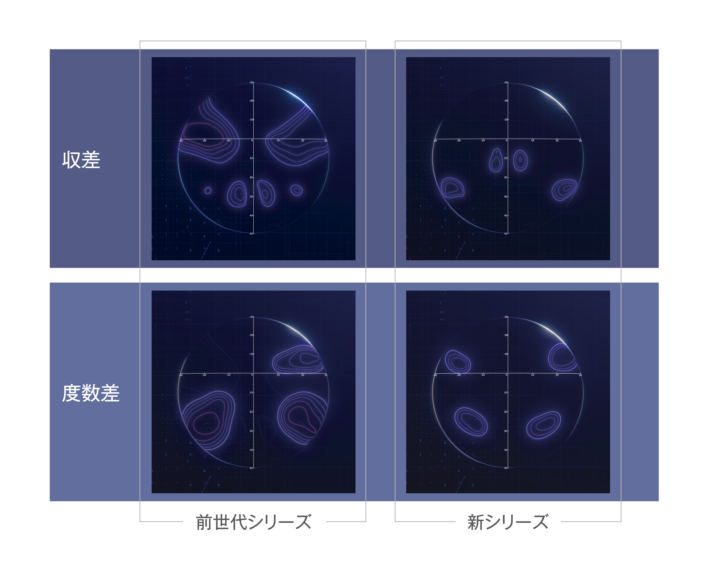 両眼で対象物を捉えた際の理想的な度数と収差を、瞬時に生成