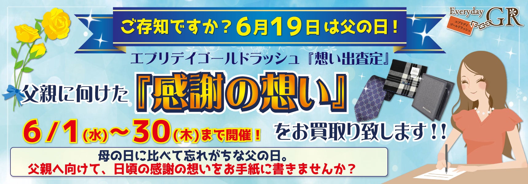 日頃、家族を支えるお父様へなかなか言えない感謝の想い伝えるお手伝い致します!! 6月の想い出査定 「父の日」想い出査定キャンペーン実施