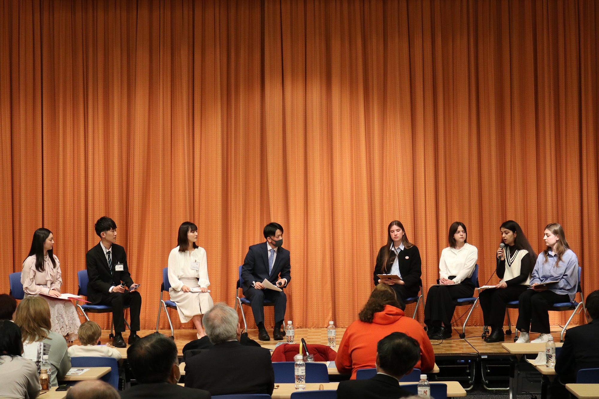 法政大学応援団からのエールで、本イベントは閉会したが、最後の閉会の挨拶で奈月れいが再び登壇、ウクライナ避難民の方々の暮らしが少しでも心穏やかに安らげるように、日本人として引き続きサポートできるよう、自分達が今後も努力をしていく、活動を続けていくという言葉が参加した避難民の方に向けて送られ、本人から避難民の方へひまわりがプレゼントとして贈られた。