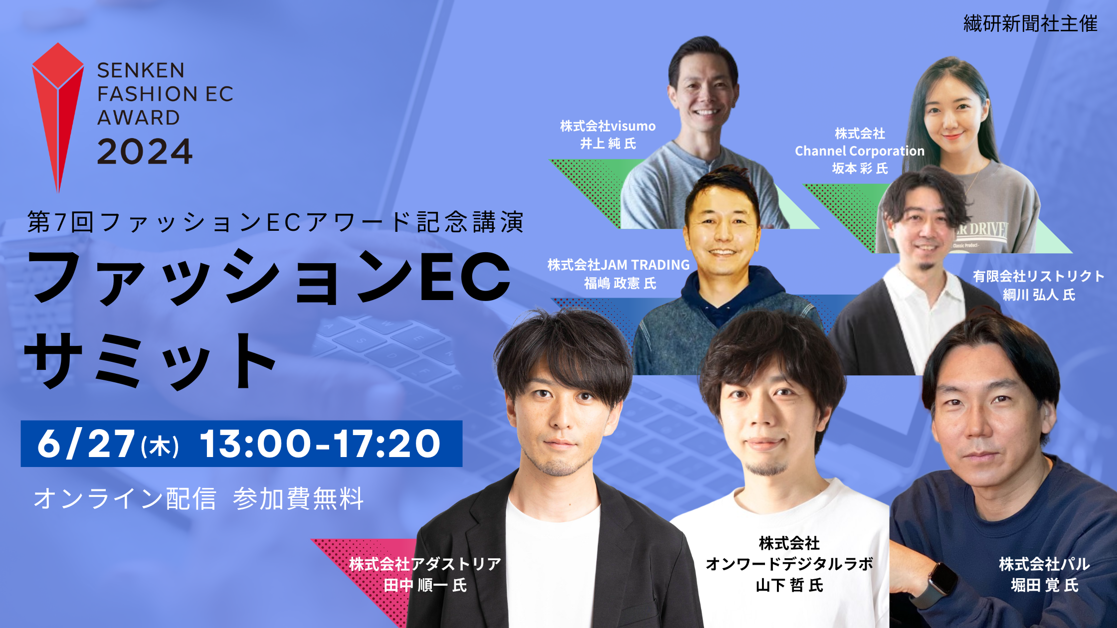 繊研新聞社では今回の受賞企業をお招きし、6月27日(木)に「ファッションECサミット-第7回ファッションECアワード記念講演」として無料ウェビナーの配信を予定しております。受賞企業の担当者が登壇し、取り組みの内容や乗り越えてきた課題などを語っていただきます。セミナーの詳細や視聴のお申込みは下記イベントページよりご確認ください。