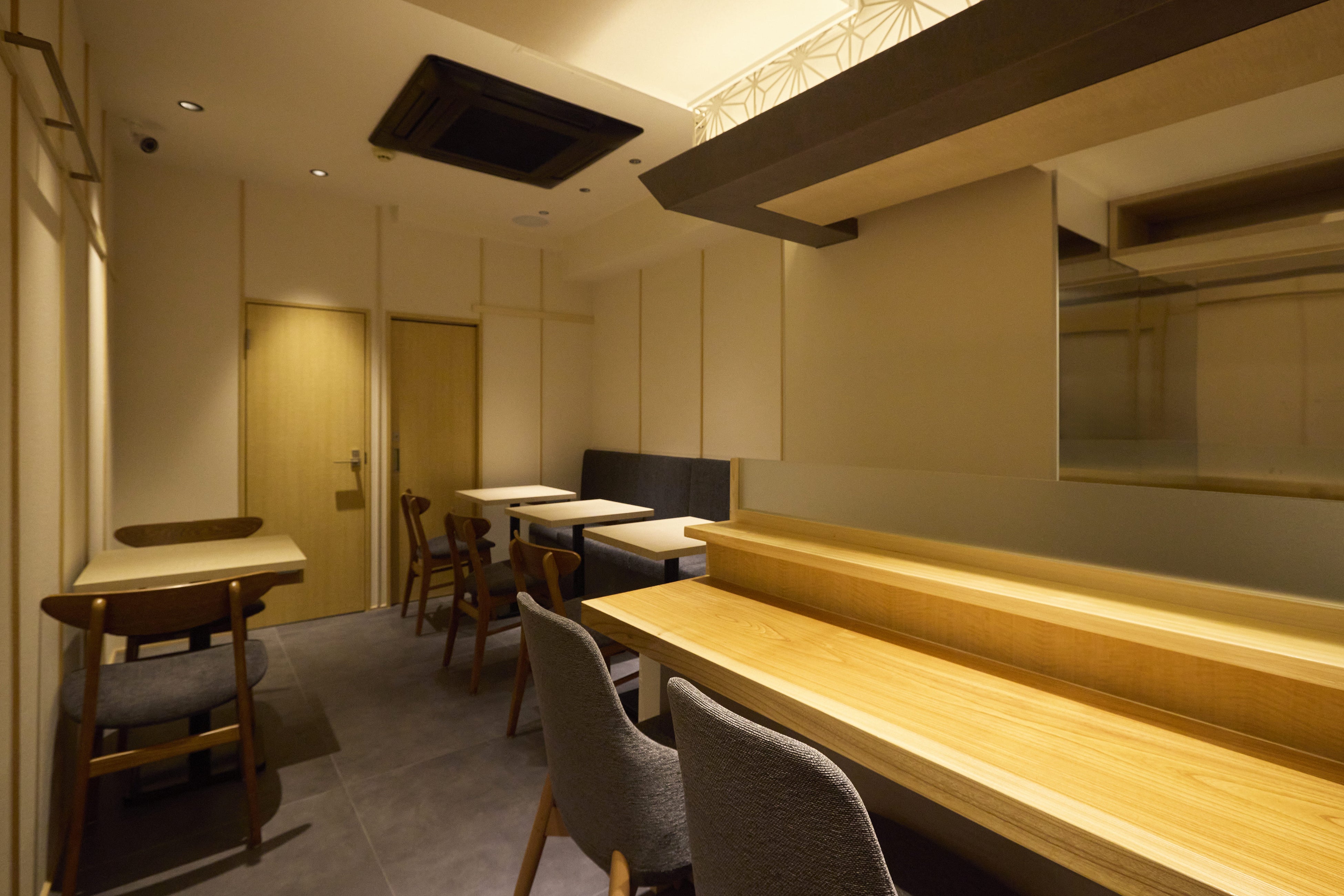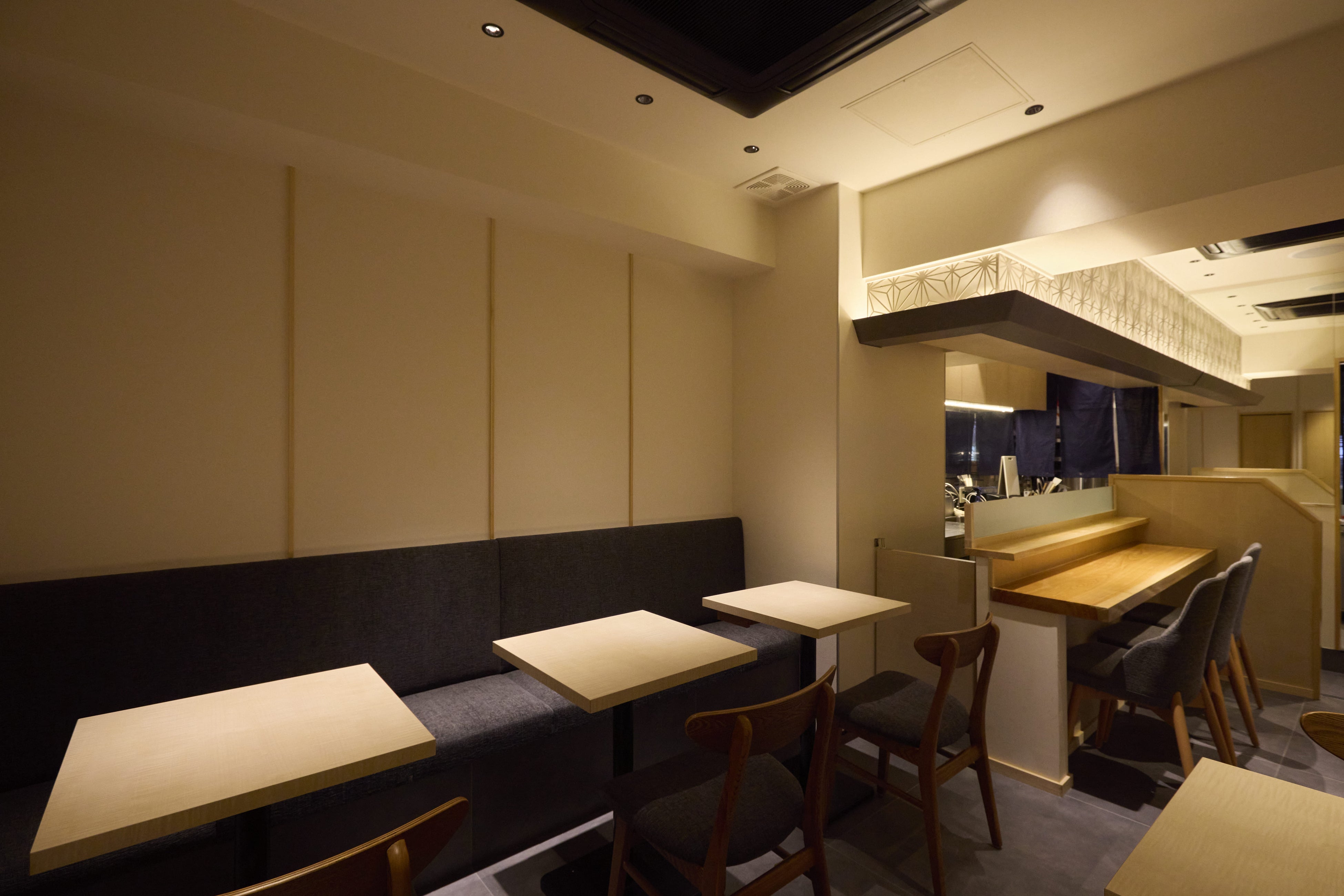 木の温もりを基調とした、落ち着きある和の空間。カウンター席を中心に、ひとりでも気軽に立ち寄れる設計としながら、ゆったりと食事を楽しめるテーブル席もご用意しています。無駄を削ぎ落としたシンプルな内装が、鰻そのものの味わいに集中できる時間を演出します。