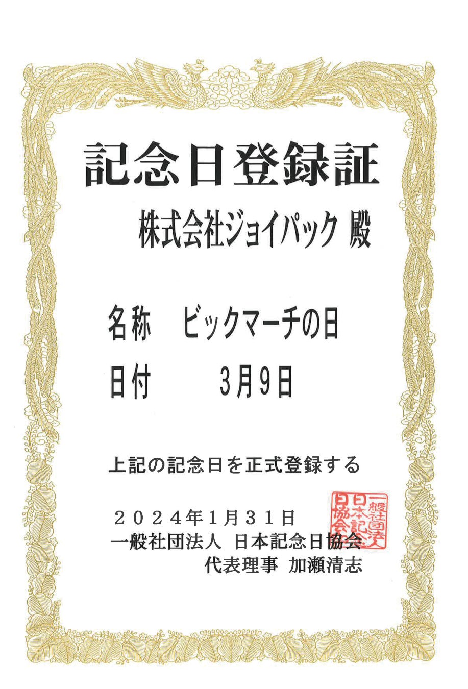 株式会社ジョイパック「ビックマーチの日」を記念日登録