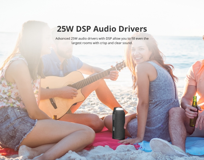 実用最大出力25W(12.5W*2)のパワフルな出力と、DSP技術によって部屋全体にサウンドが広がる360°サラウンド再生を実現したBluetoothスピーカー。Bluetooth4.1を搭載したことでスマートフォンから簡単に音楽を再生可能。また、ハンズフリー通話にも対応するなど、使う人のことを考えた機能を持つ製品です。