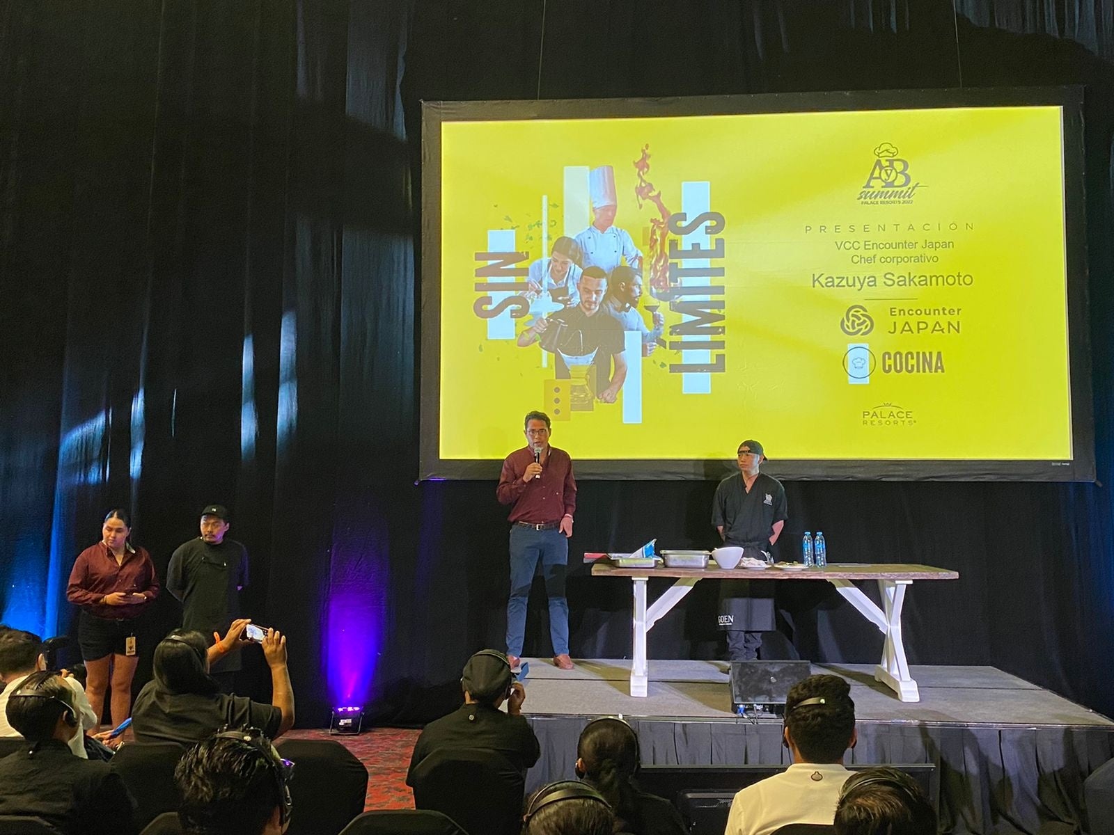 株式会社Encounter Japan (本社: 兵庫県神戸市 / メキシコシティ支店) は、カンクン市内を中心にホテル経営を行うメキシコ資本の企業であるPalace Resorts Groupが2022年9月5日から7日に掛けて開催したSummit Palace Resortsのイベントへ、Food & Beverage Div.の責任者である坂本和也、グアナファト州レオン市内のGOENでシェフを務める坂根秀哉の2名が招聘を受け、同ホテルに勤務する約143名のシェフに対して日本食のマスタークラス(注1)を実施しました。またホテル関係者や招待客 約120名に対して、スペイン人パティシエのJavier Guillén氏とコラボレーションし、夕食会の企画・食事提供を行いました。