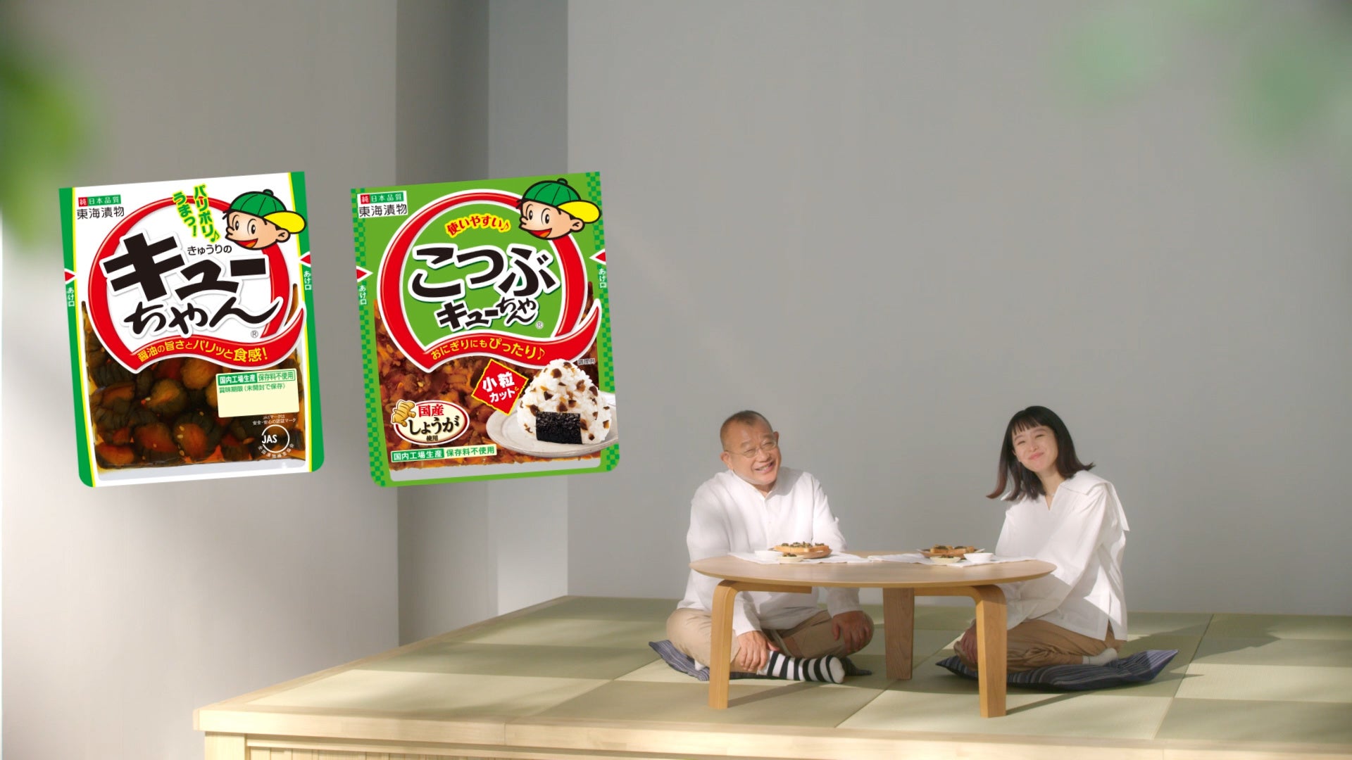 東海漬物株式会社(所在地:愛知県豊橋市、代表取締役社長執行役員:永井英朗)は、2022年2月14日(月)より、笑福亭鶴瓶さんと清野菜名さんを起用した「きゅうりのキューちゃん」の新CM「キューちゃん体験篇 ごまラー油味」と「キュー食篇 冷奴・トースト」の放映を開始します。本CMは、東海漬物公式YouTubeでも同日より、公開いたします。