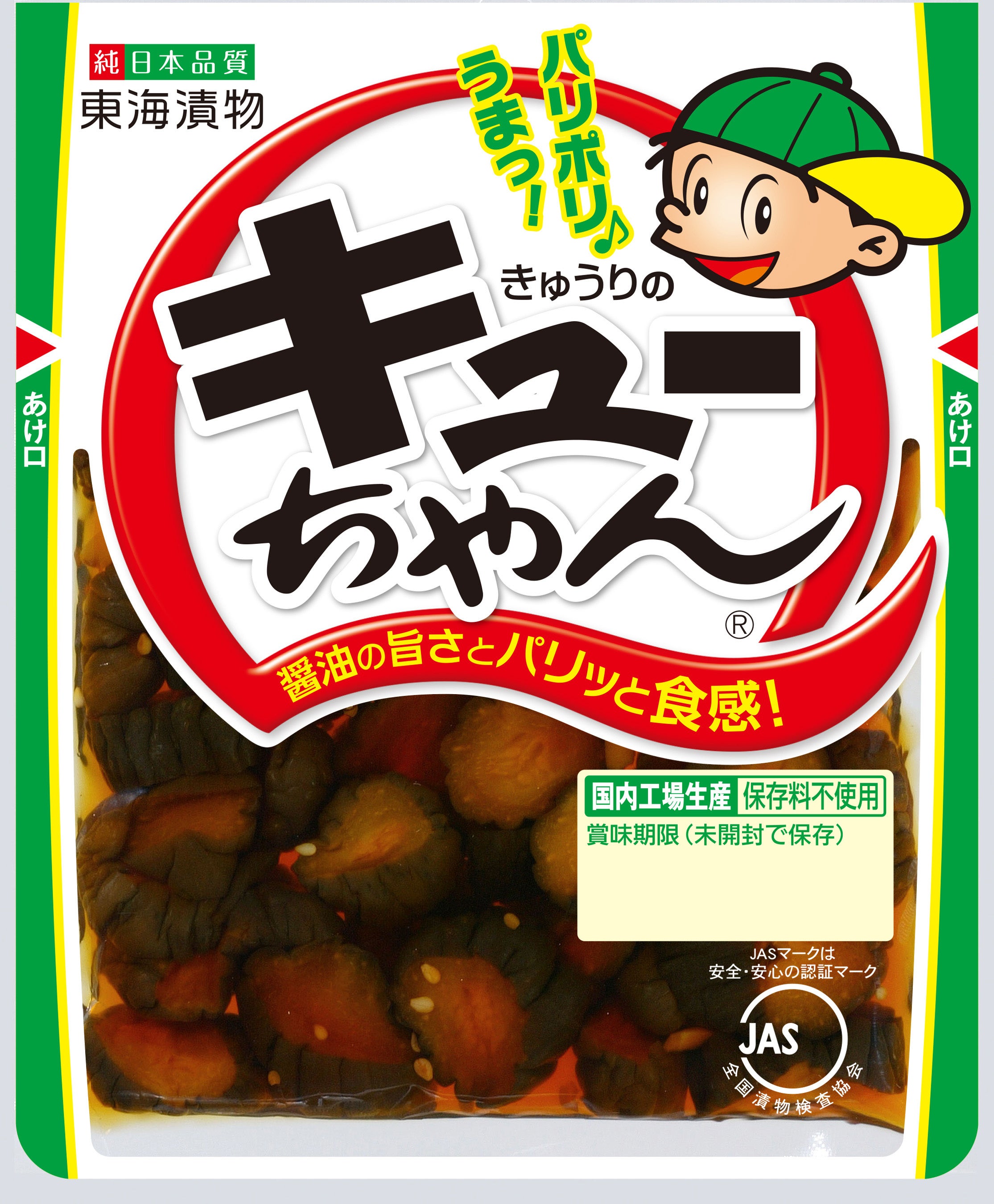 「きゅうりのキューちゃん」は、厳選した4種類の本醸造醤油をブレンドし、醤油の香り、ふくらみ、後ひくうま味を追求した胡瓜の醤油漬けです。醤油のフレッシュな香りと食感の良い四葉胡瓜、国産の生姜の絶妙なおいしさが味わえます。