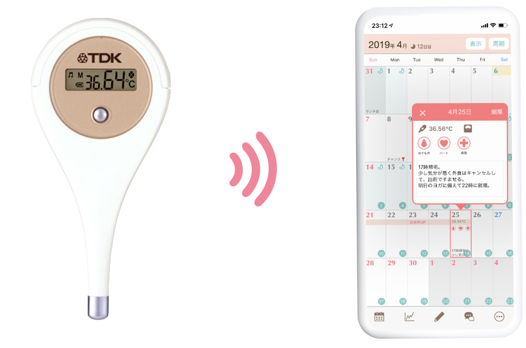 基礎体温・妊活スマホアプリ「eggy(エギー)」がTDK製 婦人用電子体温計(HT-301)と連携開始