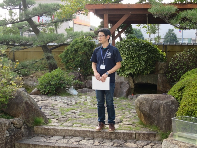 奈良工場内にある日本庭園の池をビオトープとして生息環境を整え、近畿大学より譲り受けたニッポンバラタナゴと同時に繁殖に必要とされるドブガイとヨシノボリ(淡水魚)を放流します。ニッポンバラタナゴの繁殖には、ドブガイとヨシノボリが同じ生息域にいる環境が必要となります。そのため、本活動は奈良工場社員で運営を進め、外来生物からの防除等を行うとともに、繁殖に必要なドブガイとヨシノボリの保護も合わせて行います。