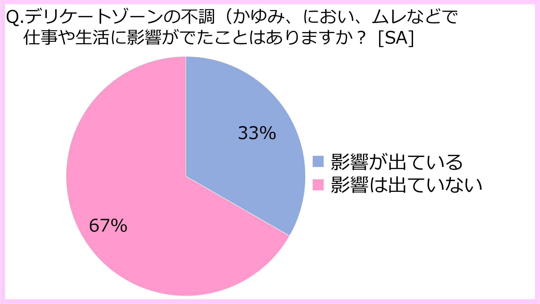 帝人が昨年5月に実施した調査*で、デリケートゾーンの不調を感じたことがある方が9割近くいるという結果でしたが、今回の調査で、仕事や生活に支障が出るほどの不調を感じると回答した方が全体の3割もいることに個人的に驚いています。同時に、デリケートゾーンのケア、特にデリケートゾーンの状態と膣内フローラの関係などは比較的最近出てきた概念であり、認知度が低いことも明らかになりました。
