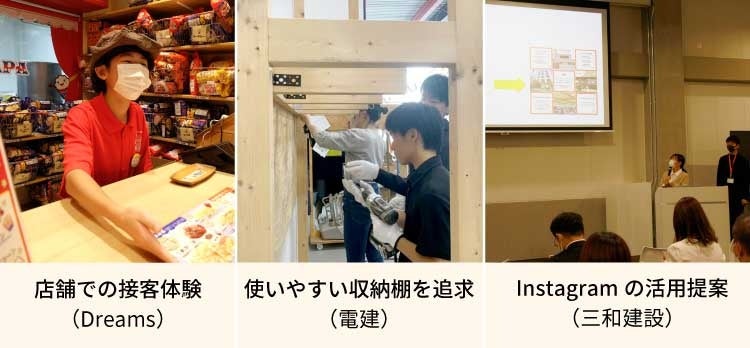・販売や設計や広報・人事など多様な仕事に関わり、気づきを深め合い、企業とのフィードバックを行います。