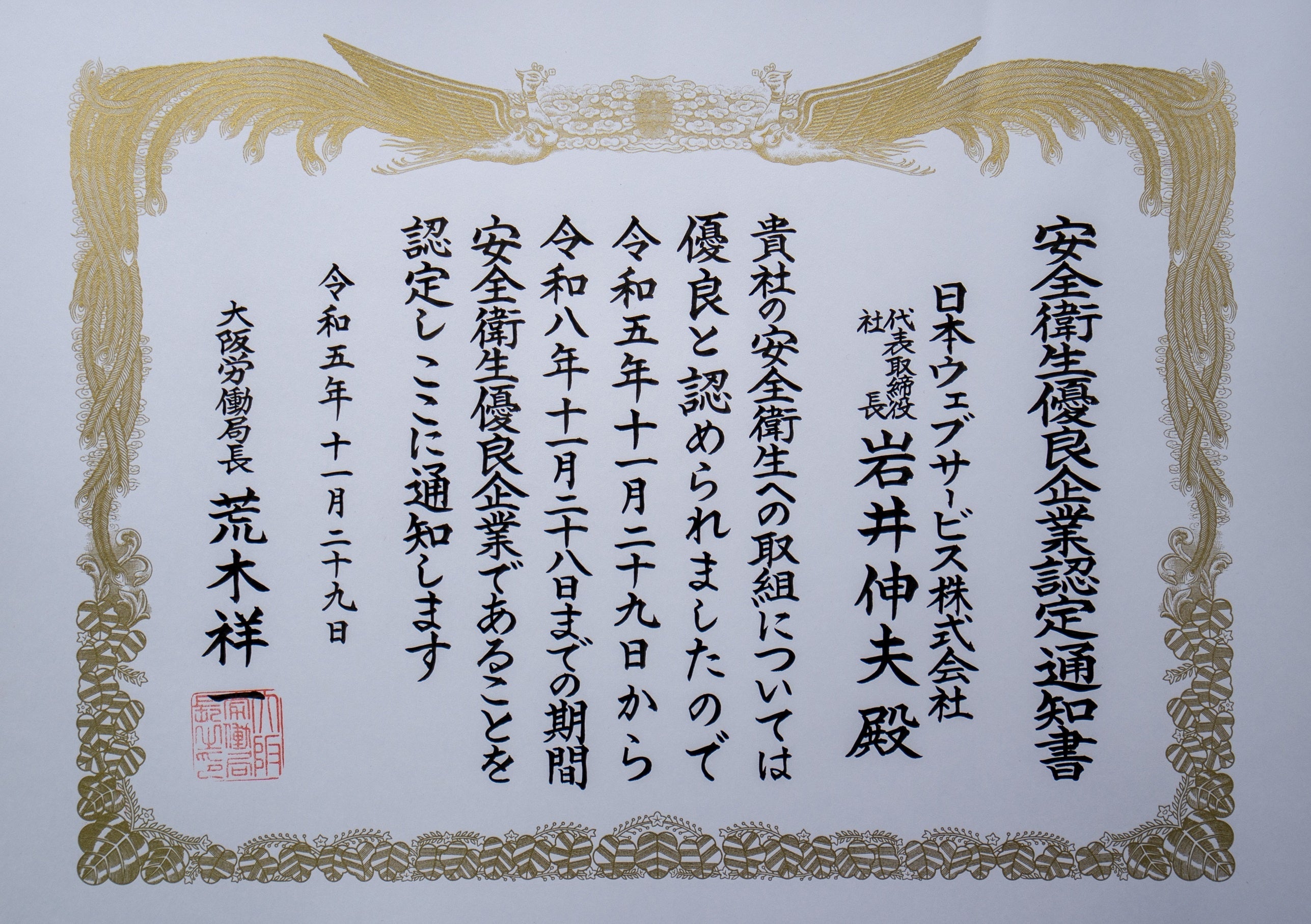 日本ウェブサービス株式会社 ★全国初の快挙★厚生労働省から安全衛生優良企業(通称ホワイトマーク企業)に3期連続認定