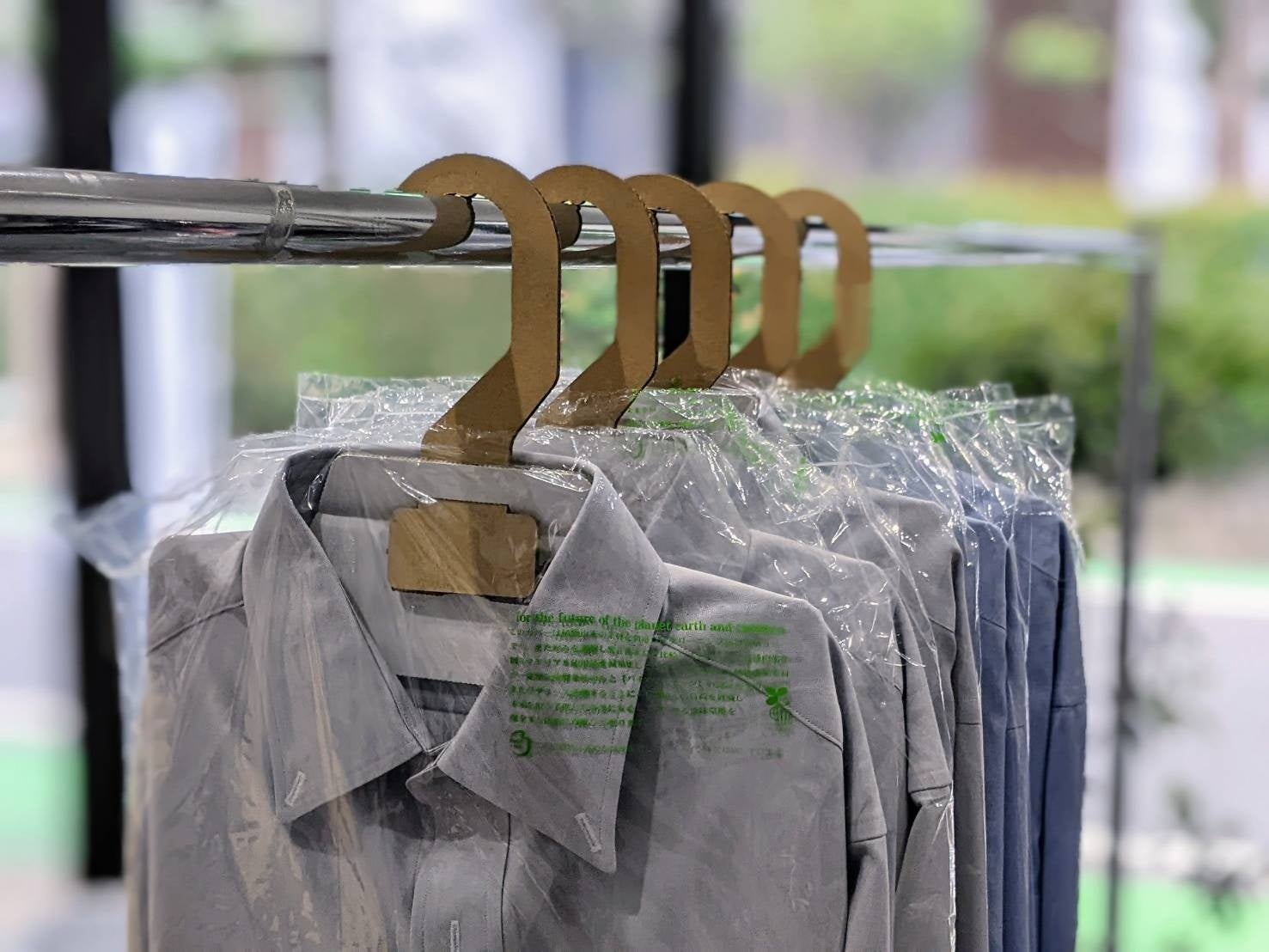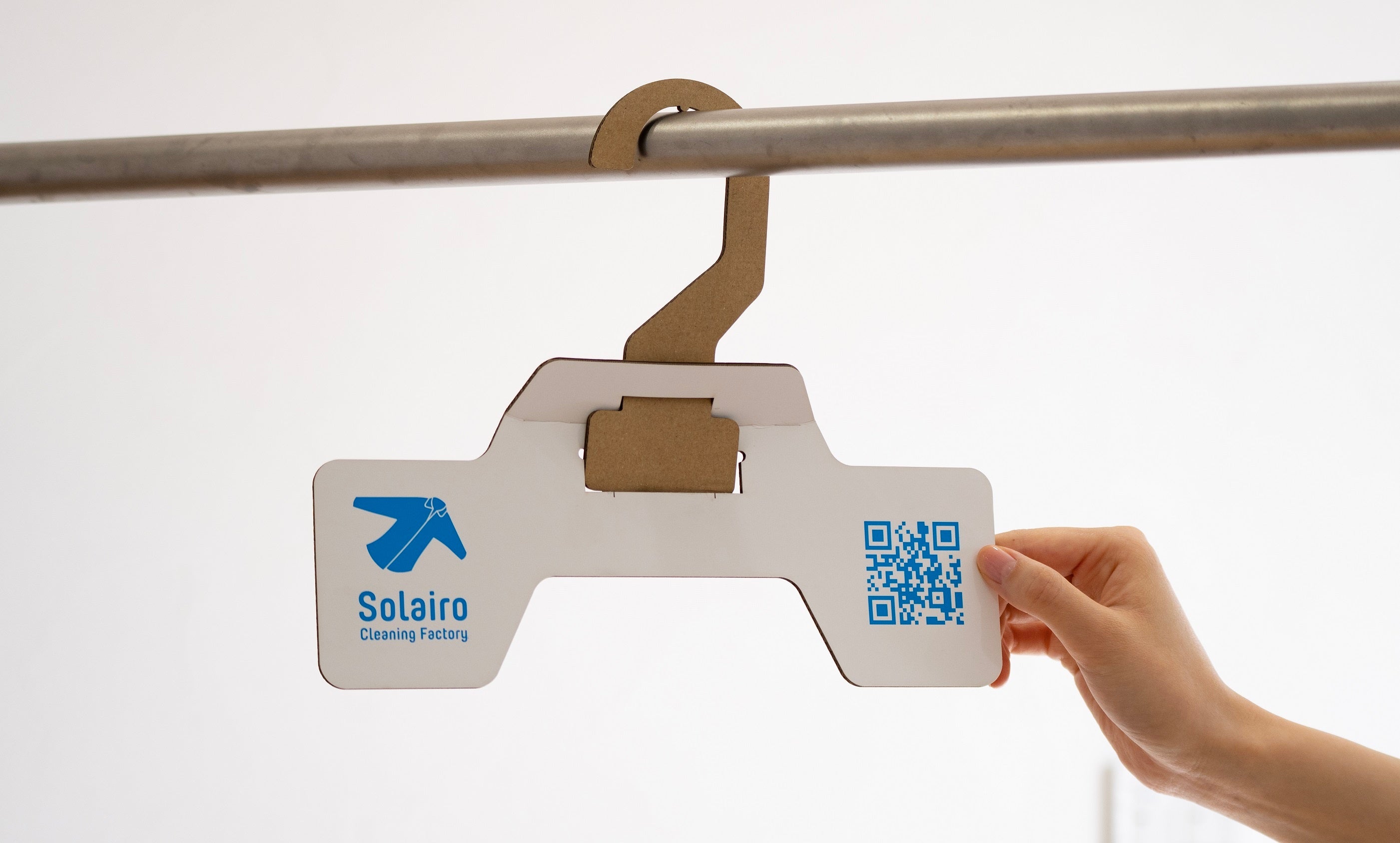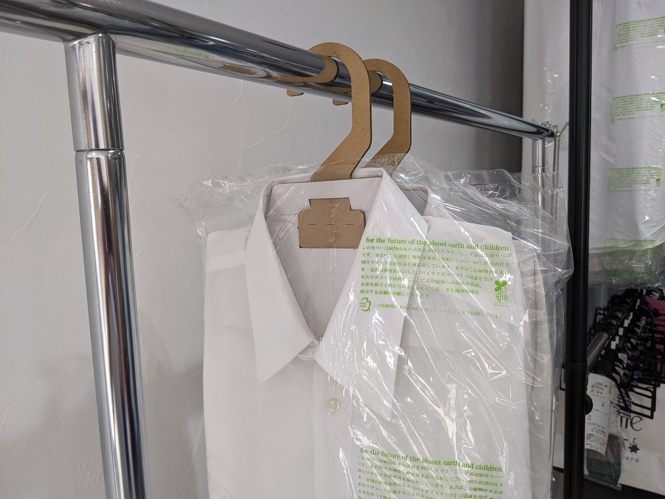当製品は、クリーニング用のYシャツ包装機で使用できる業務用ハンガーで、2022年11月5日よりSolairo Cleaning Factory店舗で使用を開始しており、業界初の試みとなります。