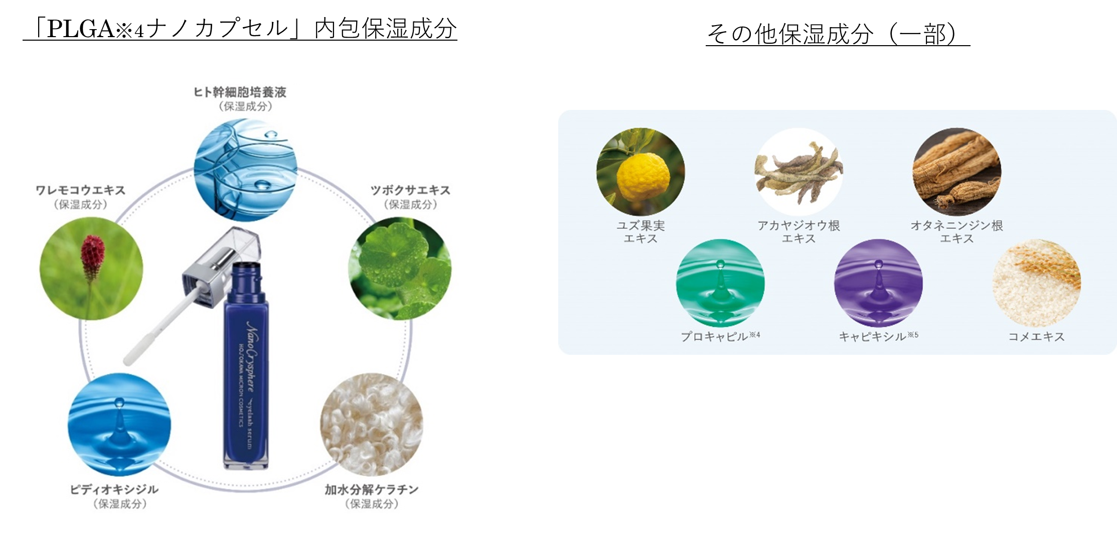 ※保湿成分を配合した「PLGA※2ナノカプセル」は熱に弱いため、塗布後乾かない内にドライヤーを使用することは避けてください。