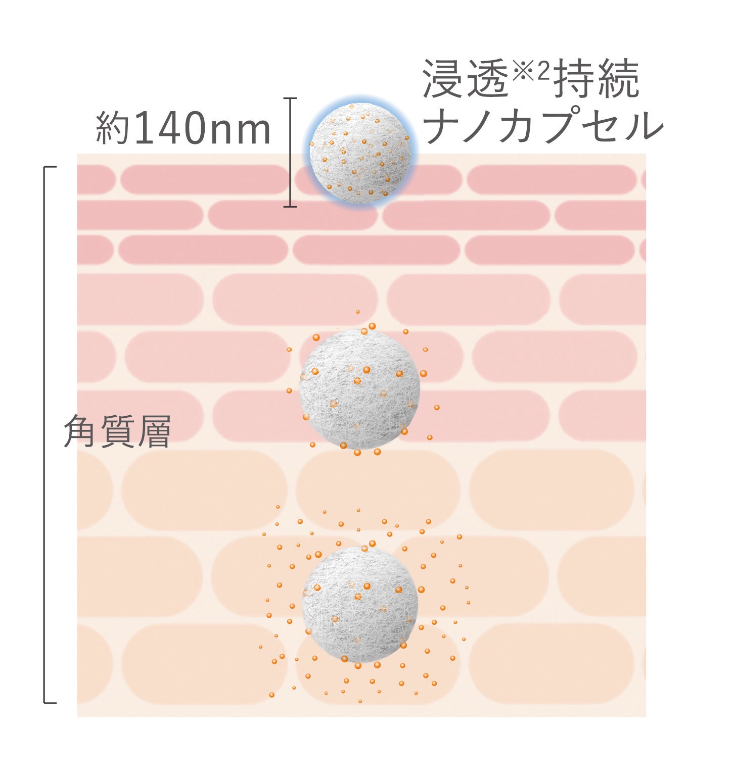 ※1:「PLGAナノカプセル」を活用した化粧品として世界・業界初(2004年2月時点 ホソカワミクロン化粧品株式会社調べ)