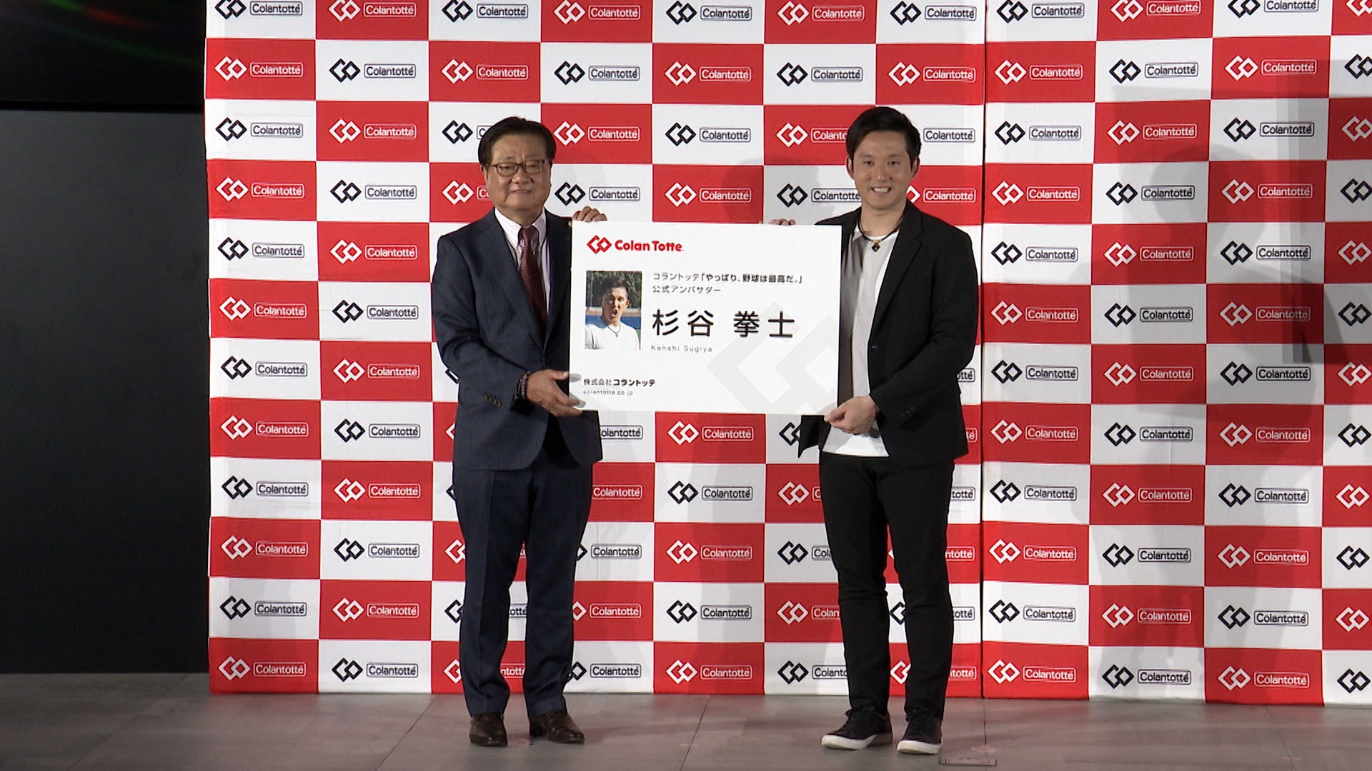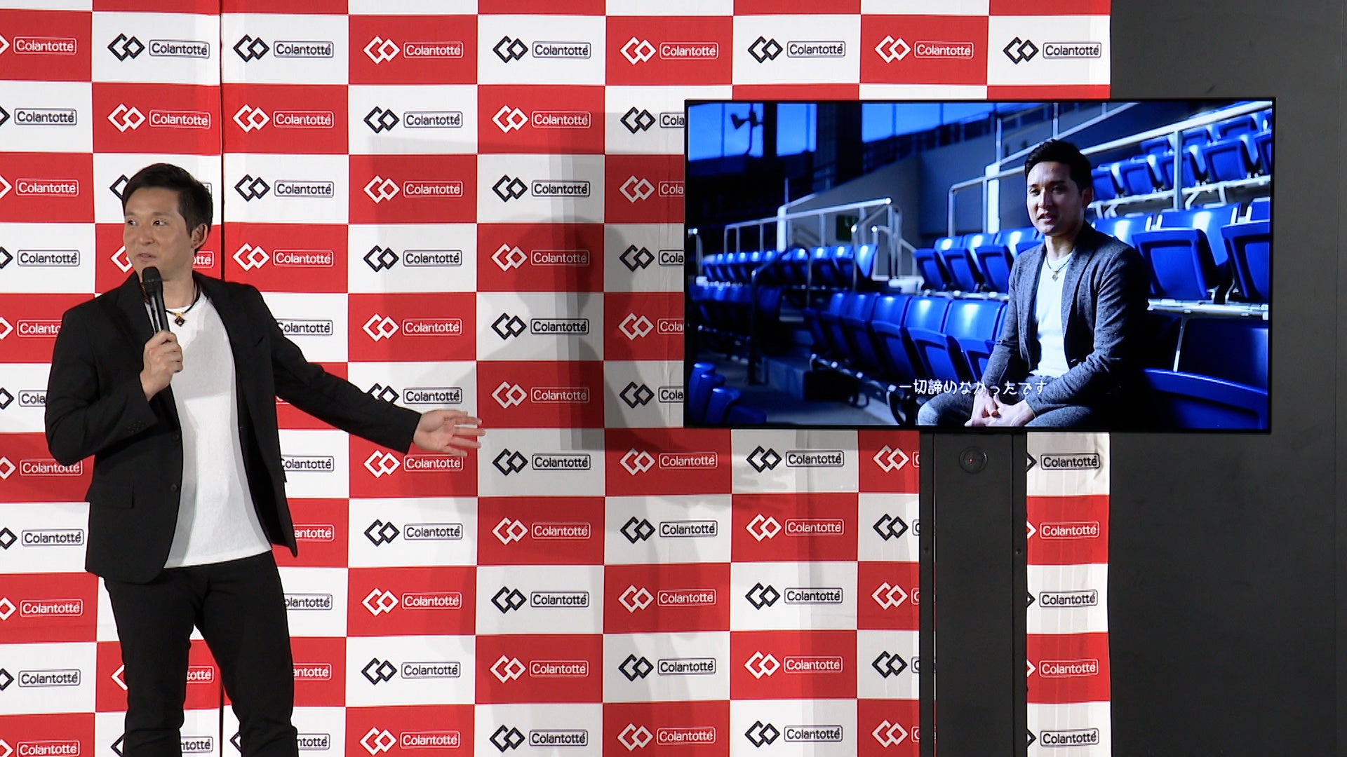 当社のプロモーションの中軸に置いている野球に対して、明るい話題をお届けできたらと思い、開催をいたしました。現在、9人の選手とアドバイザリー契約を締結しており、この就任式を通じて多くの野球ファン、スポーツファンにコラントッテの事を知っていただき、人々の「笑顔」に繋がればと考えています。「笑顔は私の人生の最大のコンセプトです。すべては毎日の健康と大切な人を守る為に。“今日も笑顔のそばにいる”をスローガンに、より一層の期待と責任をもって製品開発やサービスを提供し、皆様の健康に貢献して参ります。」と発言しました。