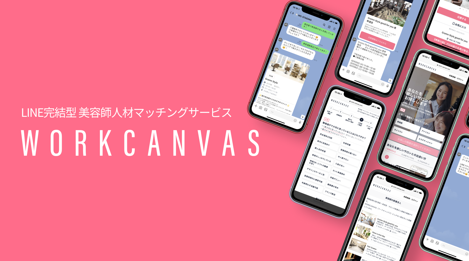 ・「WORKCANVAS」は、現在美容業界向けに展開しているチャット型の人材マッチングサービスです。