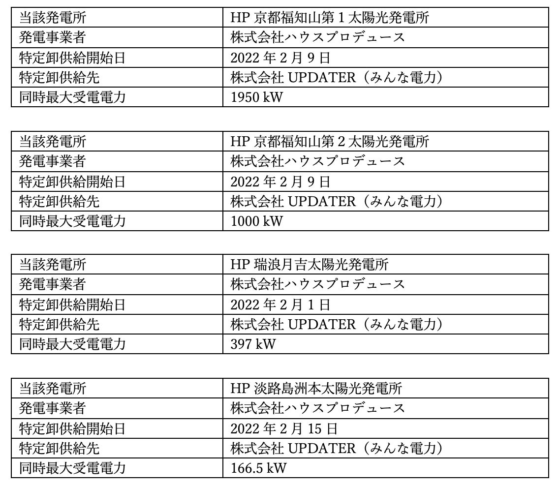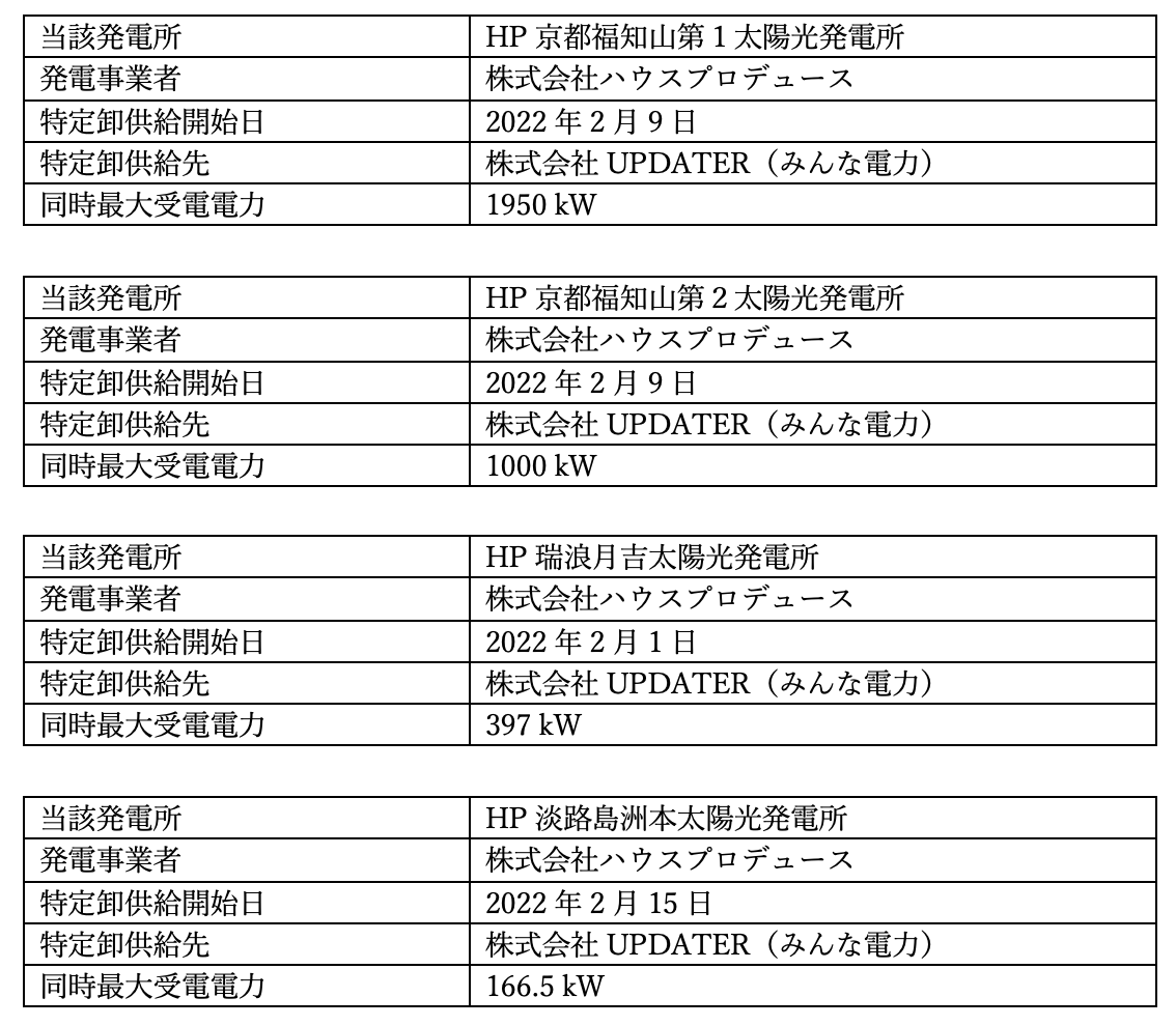 自社が保有する太陽光発電所4件の電力をみんな電力に特定卸供給開始 脱炭素社会に寄与 2月1日より順次