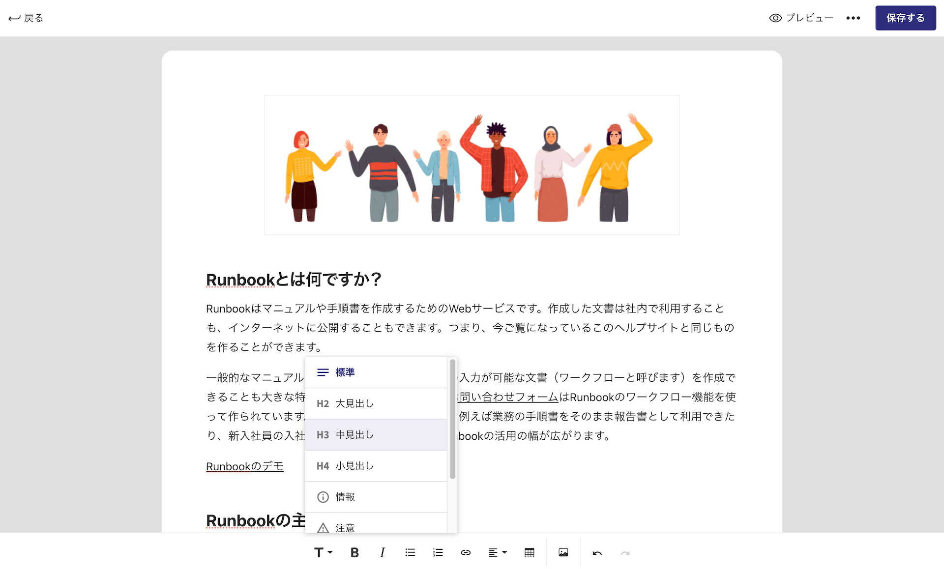 Runbookは用途に応じてさまざまな種類のマニュアルにご利用いただけます。以下はその一例です。