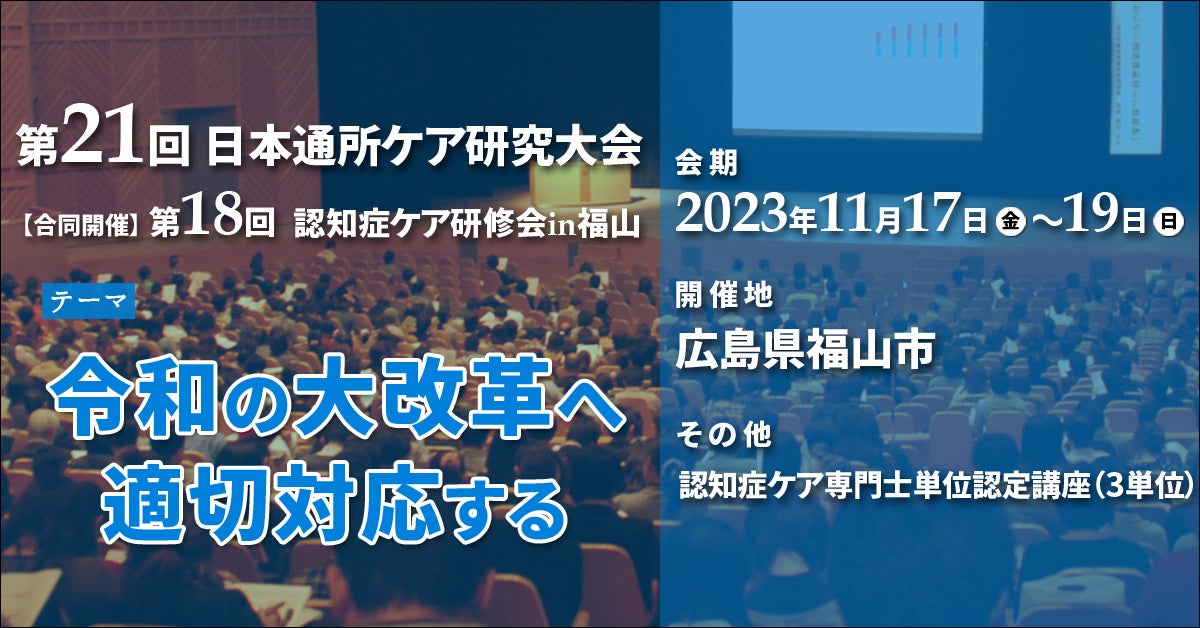 令和の大改革!介護・医療・障害分野のトリプル制度・報酬改定へ適切対応!「第21回日本通所ケア研究大会(合同開催)第18回認知症ケア研修会in福山」