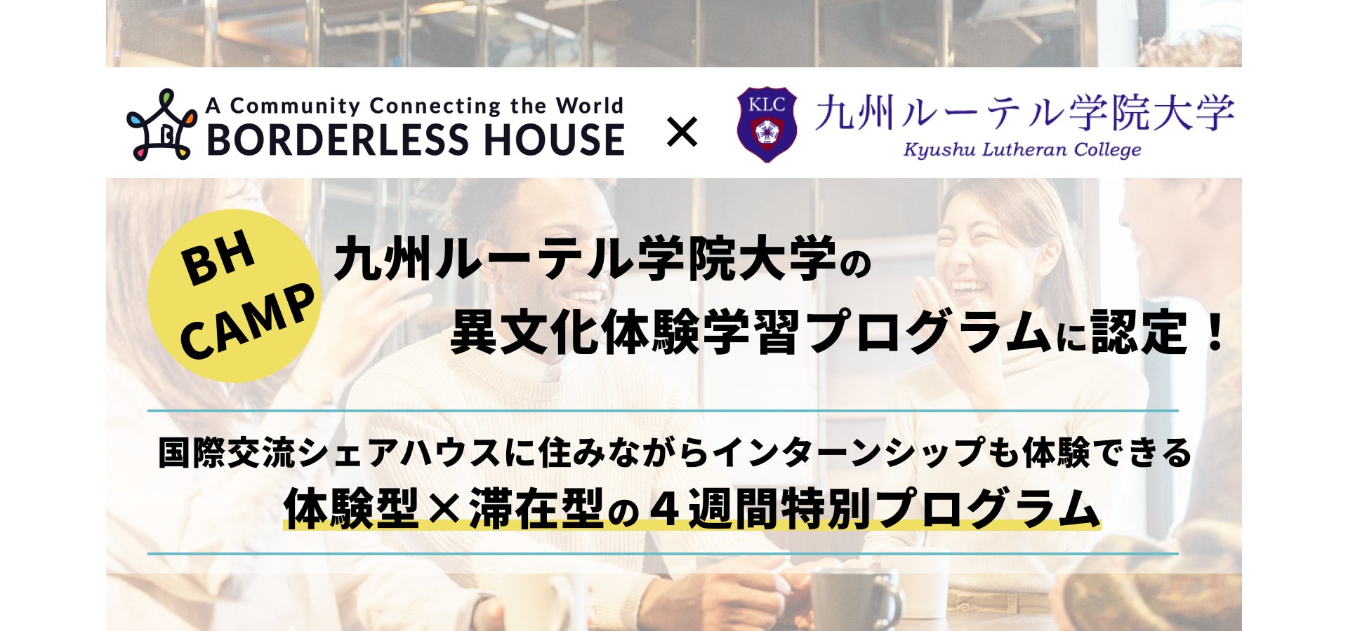 しかし、様々な事情により海外渡航が難しい生徒にも同様の体験をしてもらいたい想いがあり、国内でもできる国際交流型インターンシップとしてボーダレスハウスの「BH CAMP」が九州ルーテル学院大学内で採択され、今季より公式な異文化体験学習プログラムとして認定されました。