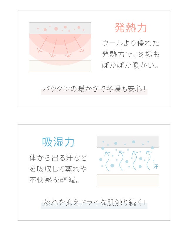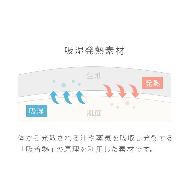 吸湿発熱素材と呼ばれる、体から発生する水分を基に発熱する特殊素材を採用。