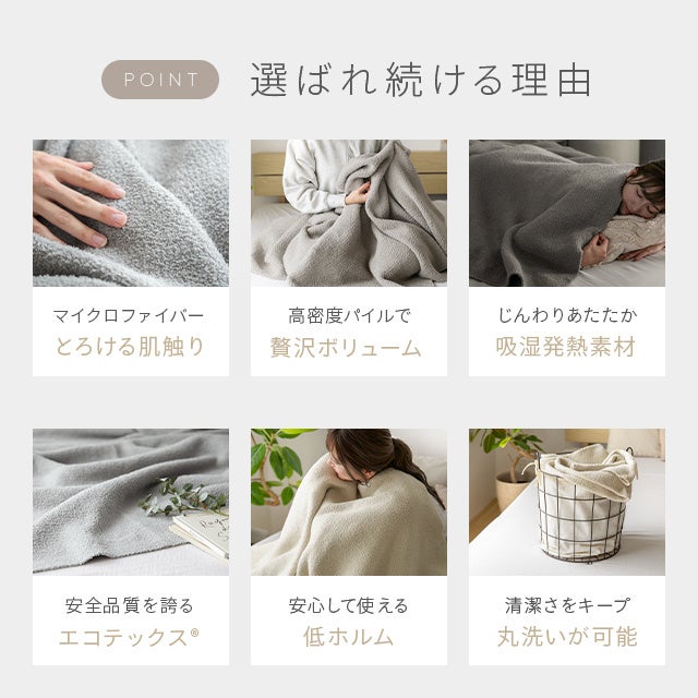 ふわふわしたブランケットが増えていく中、この度開発した商品は贅沢な密度と、毛丈を短くすることで他社にはない、肌に馴染むようなしっとりとした触り心地を実現しました。