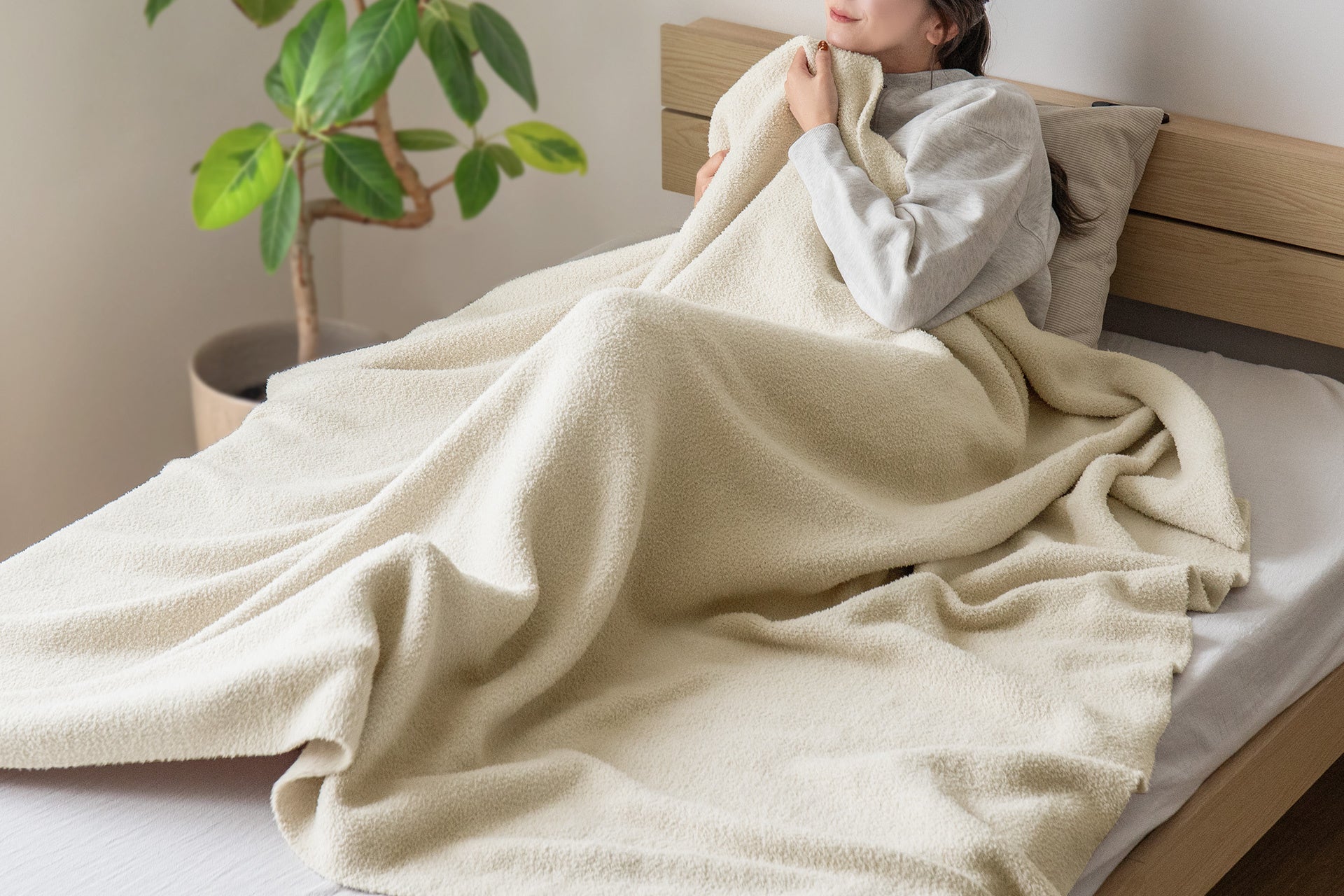 パイルの密度を従来品よりも強化することで、ブランケットの薄さに反した適度な重量感を実現し、寝返りなどでブランケットがはだけることが無いよう重量を設計しました。