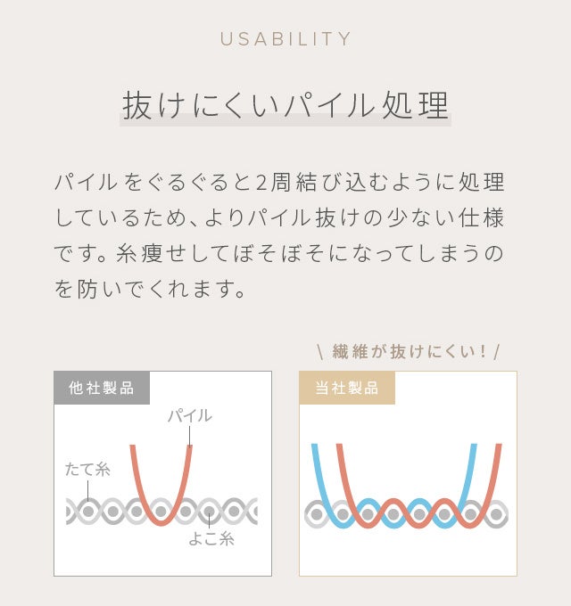 パイルの加工にも従来品よりもこだわることで長くご使用いただける製品になっております。