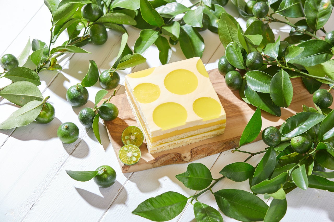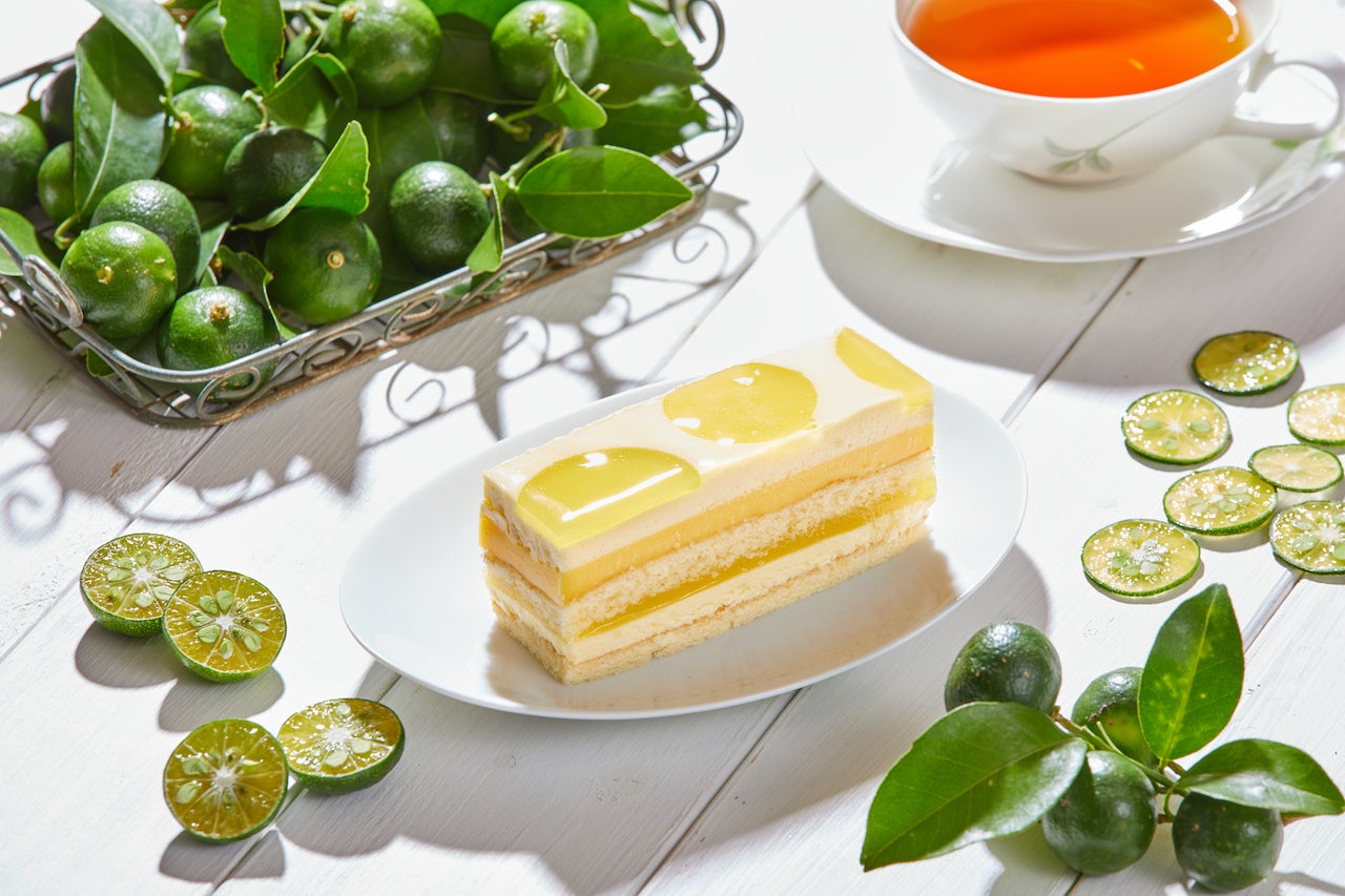 沖縄特産のシークヮーサー使用、青切りの爽やかな香りと酸味を再現した新感覚のチーズケーキを元祖紅いもタルトの御菓子御殿が期間限定で販売。