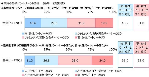 また、≪近所付き合いに積極的≫では、『夫・男性パートナーのほう(計)』は38.0%、『妻・女性パートナーのほう(計)』は62.0%でした。