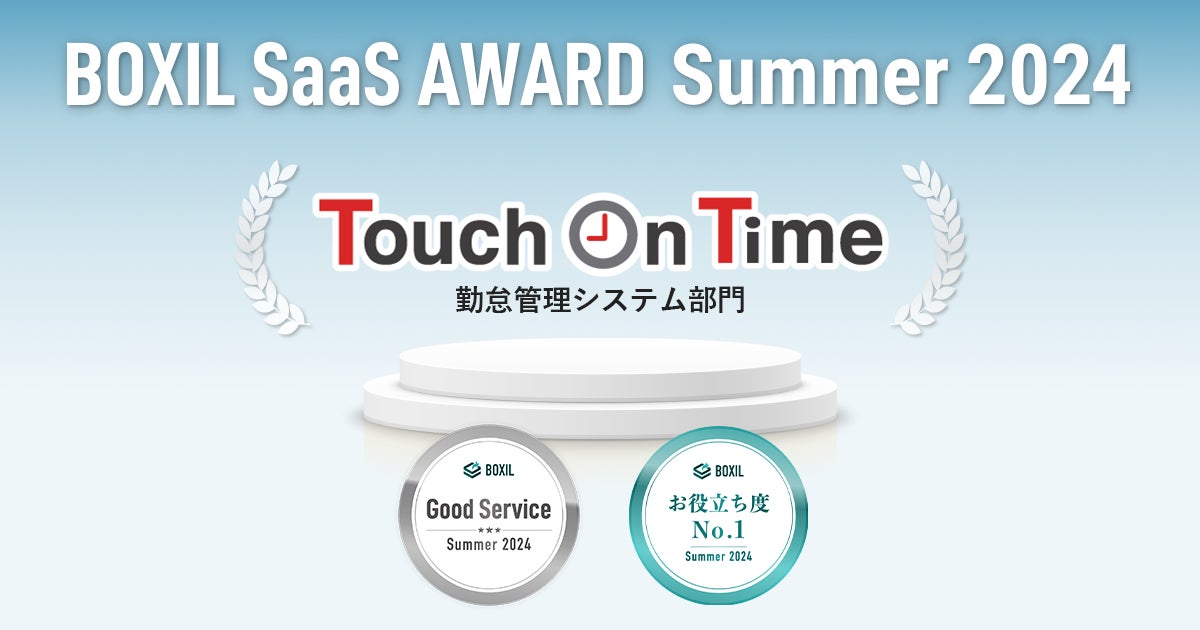 Touch On Time(タッチオンタイム)、「BOXIL SaaS AWARD Summer 2024」勤怠管理システム部門で「Good Service」「お役立ち度No.1」に選出