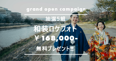 またオープンを記念して「和装ロケフォト 168,000円」を抽選で5組に無料プレゼントいたします。