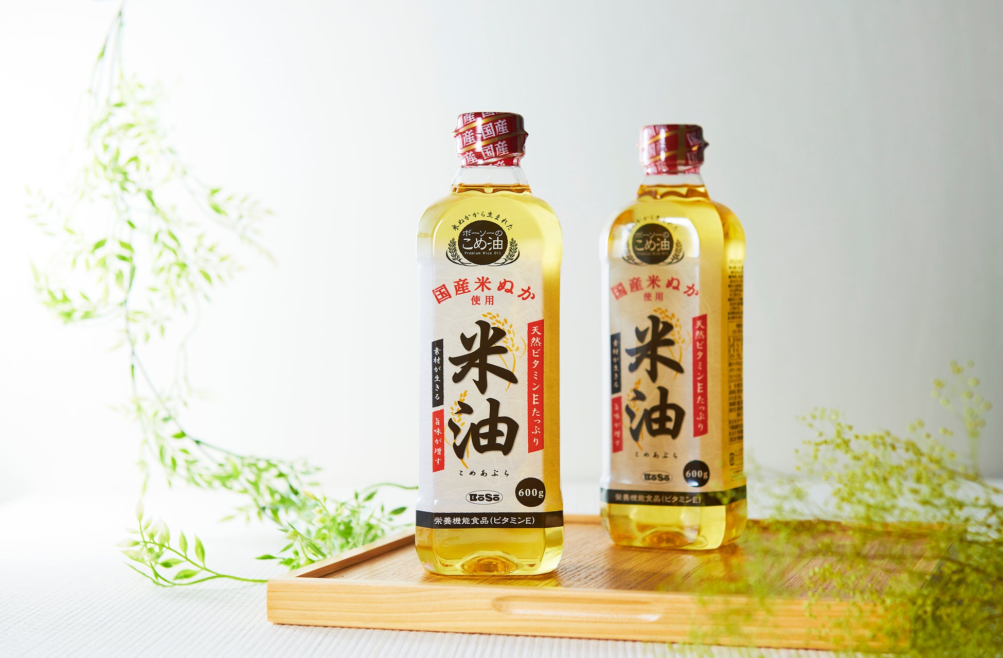 これらの事業分野はすべて、米ぬかの高度活用をベースとしています。主力製品は、油脂分野の一角を担う「米油」。また「米油」を製造していく過程で出る様々な副産物を脱脂糠、脂肪酸、ワックス、石けん、化粧品などの米由来の優れた製品に加工します。そうした日本人志向(性向)に合致した製品を通して、日常生活をより豊かにすることに貢献し続けています。