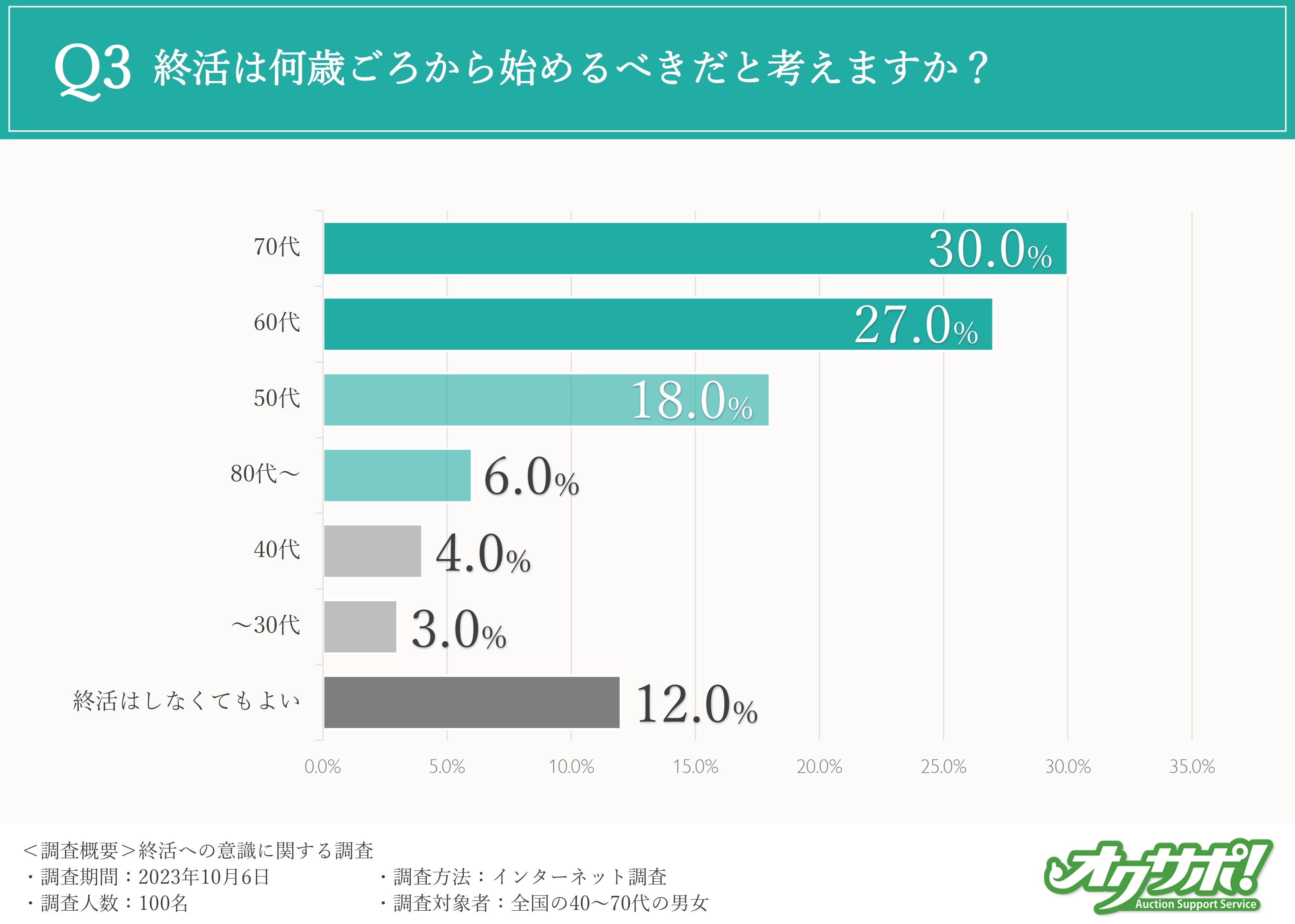 調査の結果、「70代(30%)」「60代(27%)」「50代(18%)」という結果となりました。