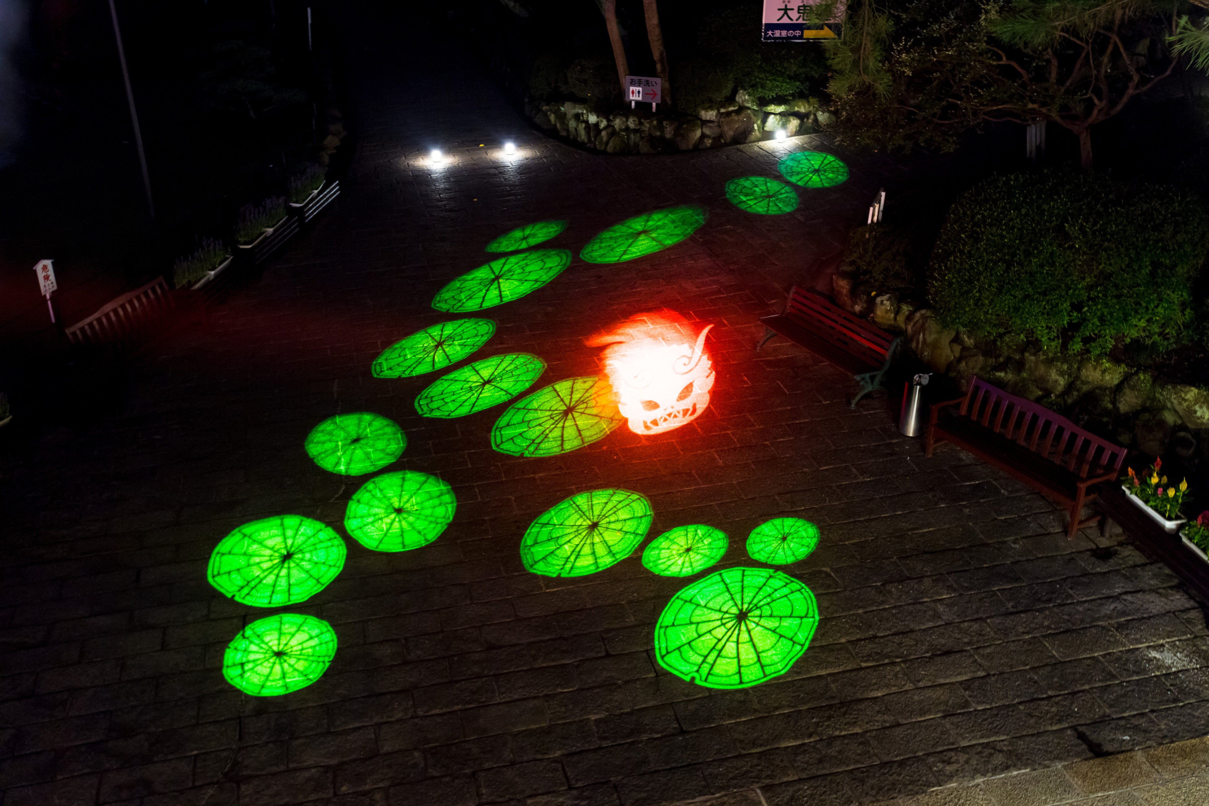 湯煙を活用したプロジェクションマッピングが幻想的。『夜の海地獄~湯気の向こうに鬼遊ぶ森~』開催決定!