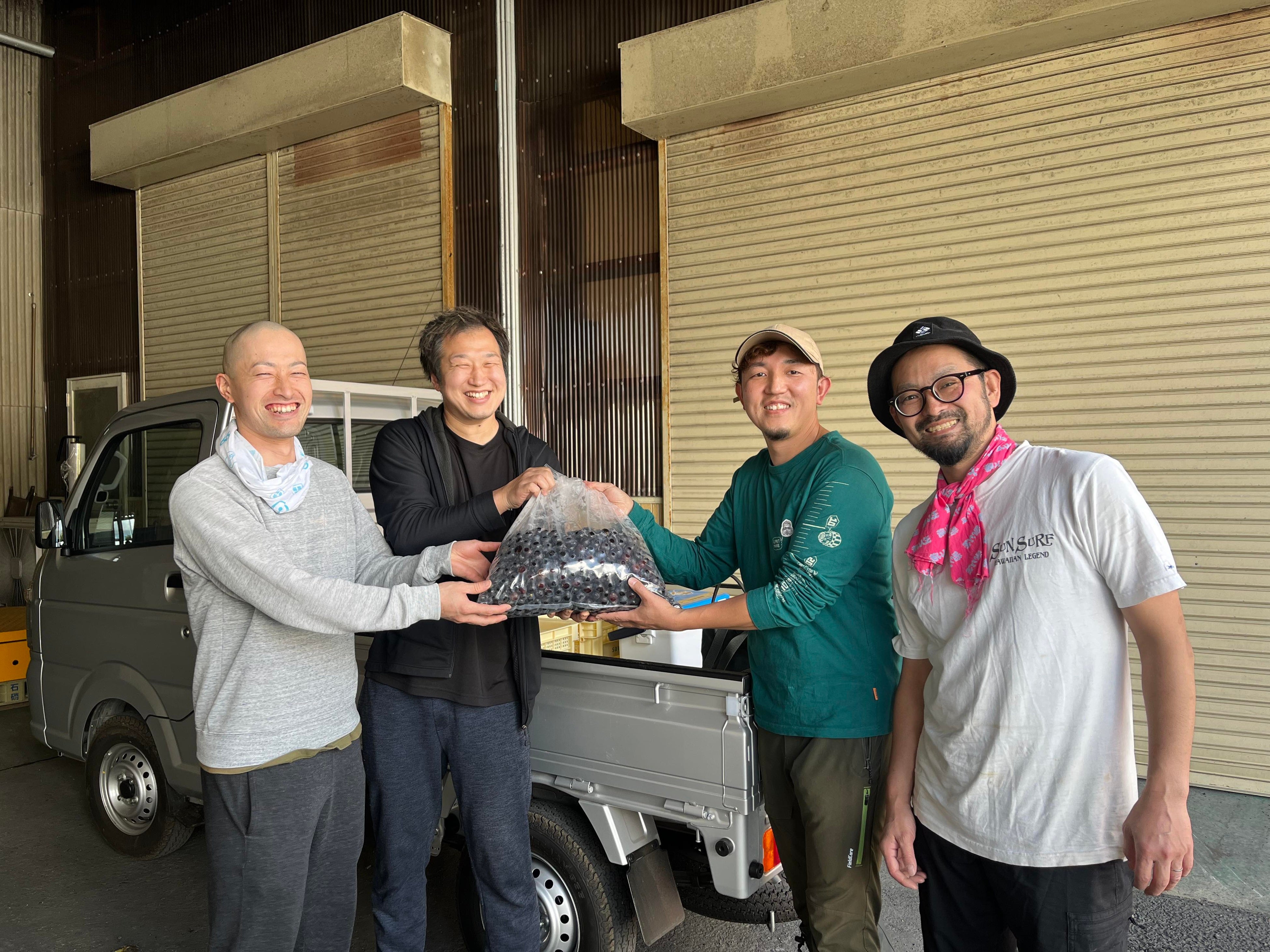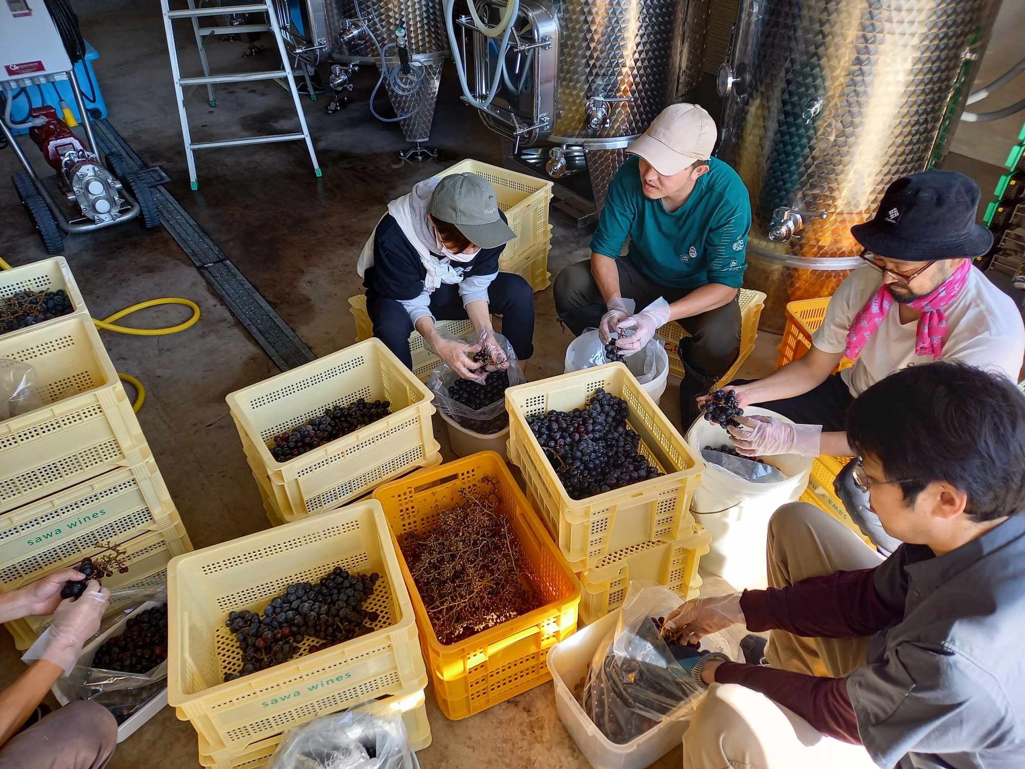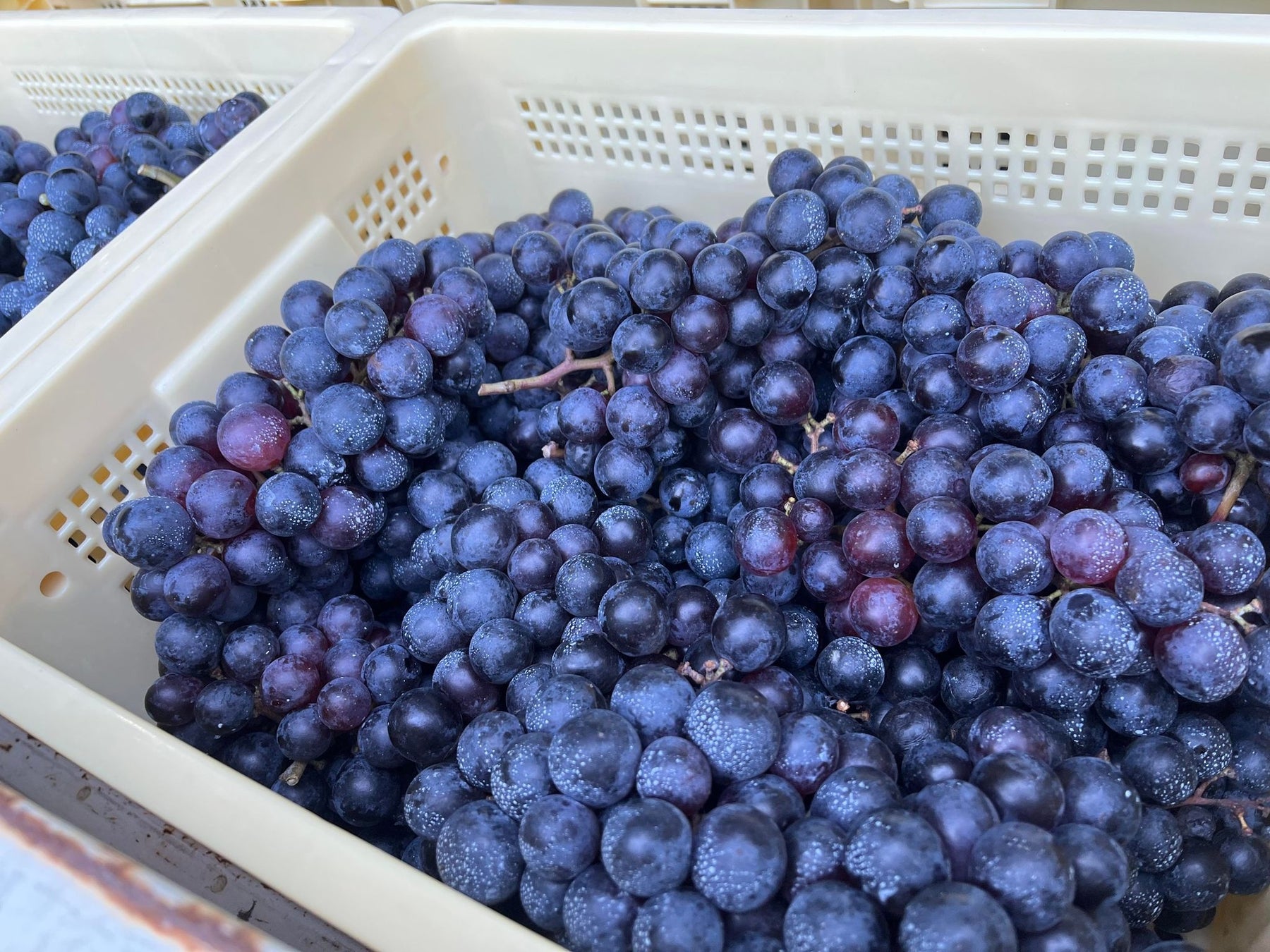 ※収穫したてのSAWAWinesさんのマスカットベーリーAを手除梗してKankikuBreweryさんへお届け
