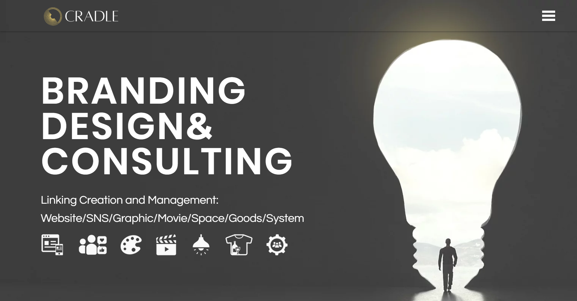 「揺り籠」を意味する「CRADLE」は、対外的な取り組みであるアウターブランディングだけではなく、ブランドの主幹となる理念に連動したデザインで、企業ブランドの確立にはじまり、企業の効率的な長期経営発展に貢献することを目的としています。