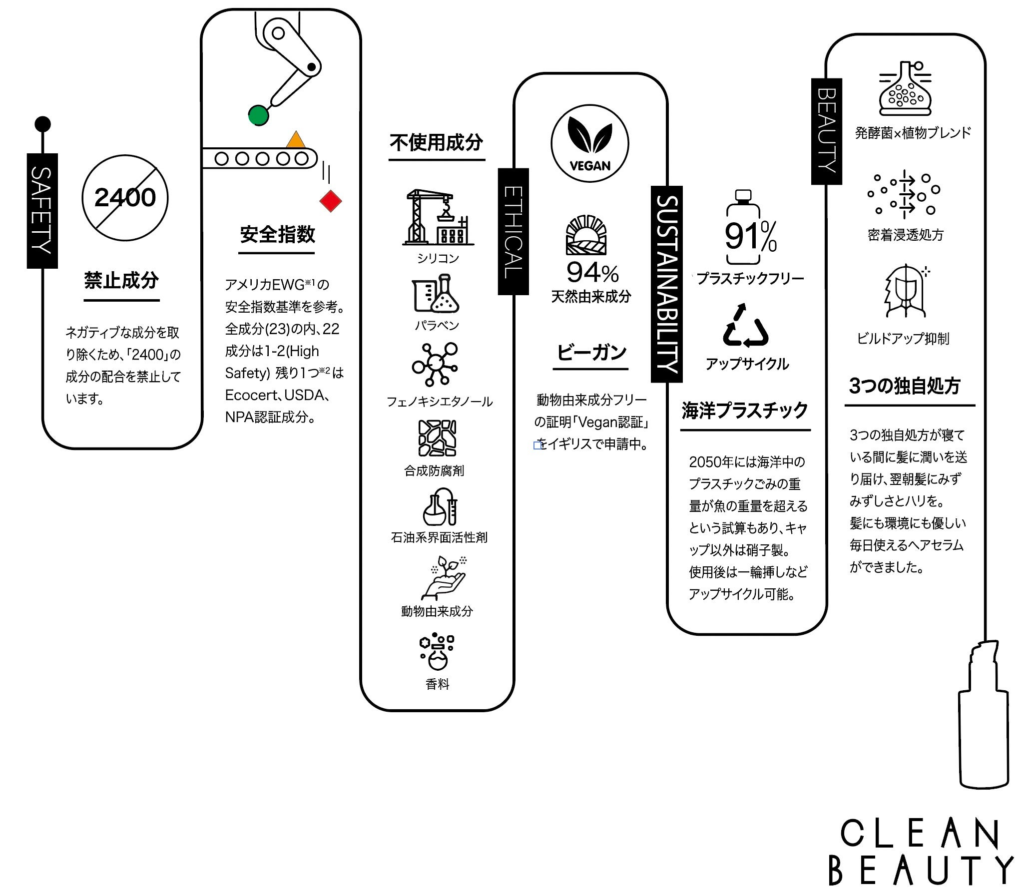 自然由来成分94%、醗酵×植物ブレンドの独自処方配合で子供にも使えて環境にも優しい流さないトリートメントを発売。ヴィーガン対応、真っ黒な硝子瓶、化粧箱がないパッケージは動物や地球の気持ちになって開発。