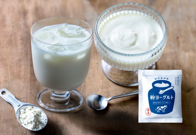 一般的なヨーグルトよりも乳酸菌が豊富で、水や牛乳で溶いて味わえるほか、料理にも活用できる、画期的な粉末タイプのヨーグルトです。