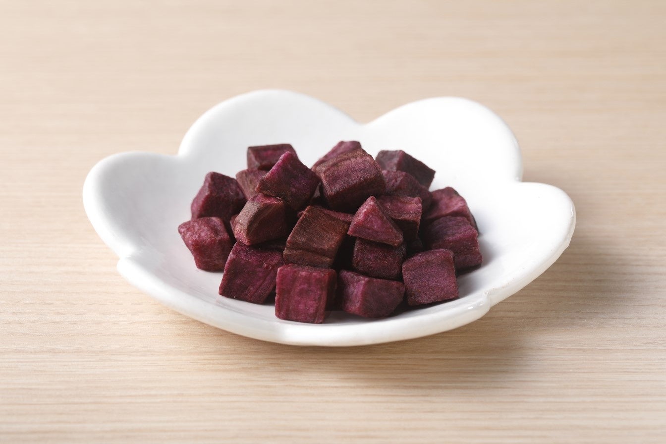 つくば店リニューアルを記念してさつまいものスナック『華のかけら』を同日の2022年9月7日に新発売いたします。本商品はカルビーポテトとコラボレーションした第2弾商品で、定温で熟成させたポテトかいつかオリジナルブランドのさつまいも「華むらさき」を使用したスナックです。「華むらさき」をダイス状にカットし、じっくりフライすることでカリッと堅めの食感に仕上げ、素材本来のおいしさをそのまま感じられます。