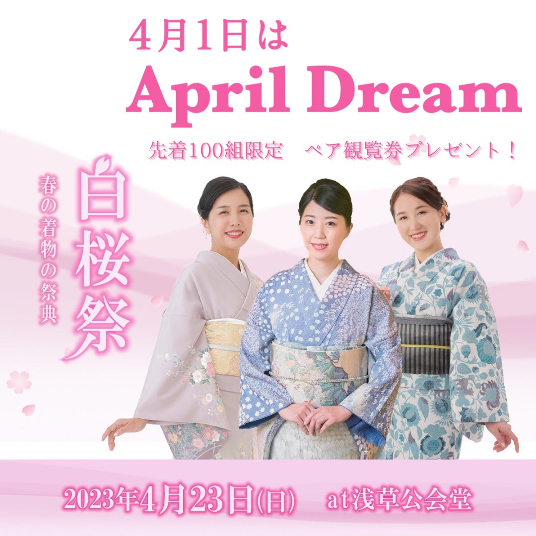 2023年4月23日(日)に浅草公開堂にて「白桜祭」を開催いたします。着物が好きでステージを一緒に盛り上げていただける観覧者を先着ペア100組200名様募集します!