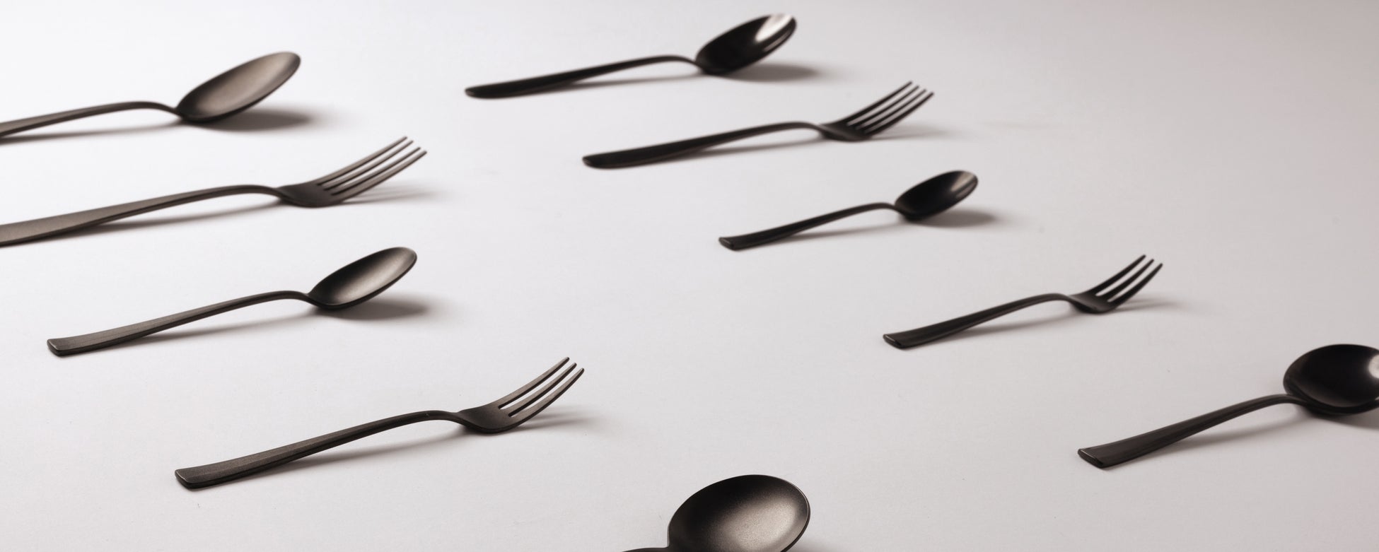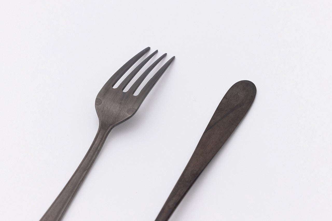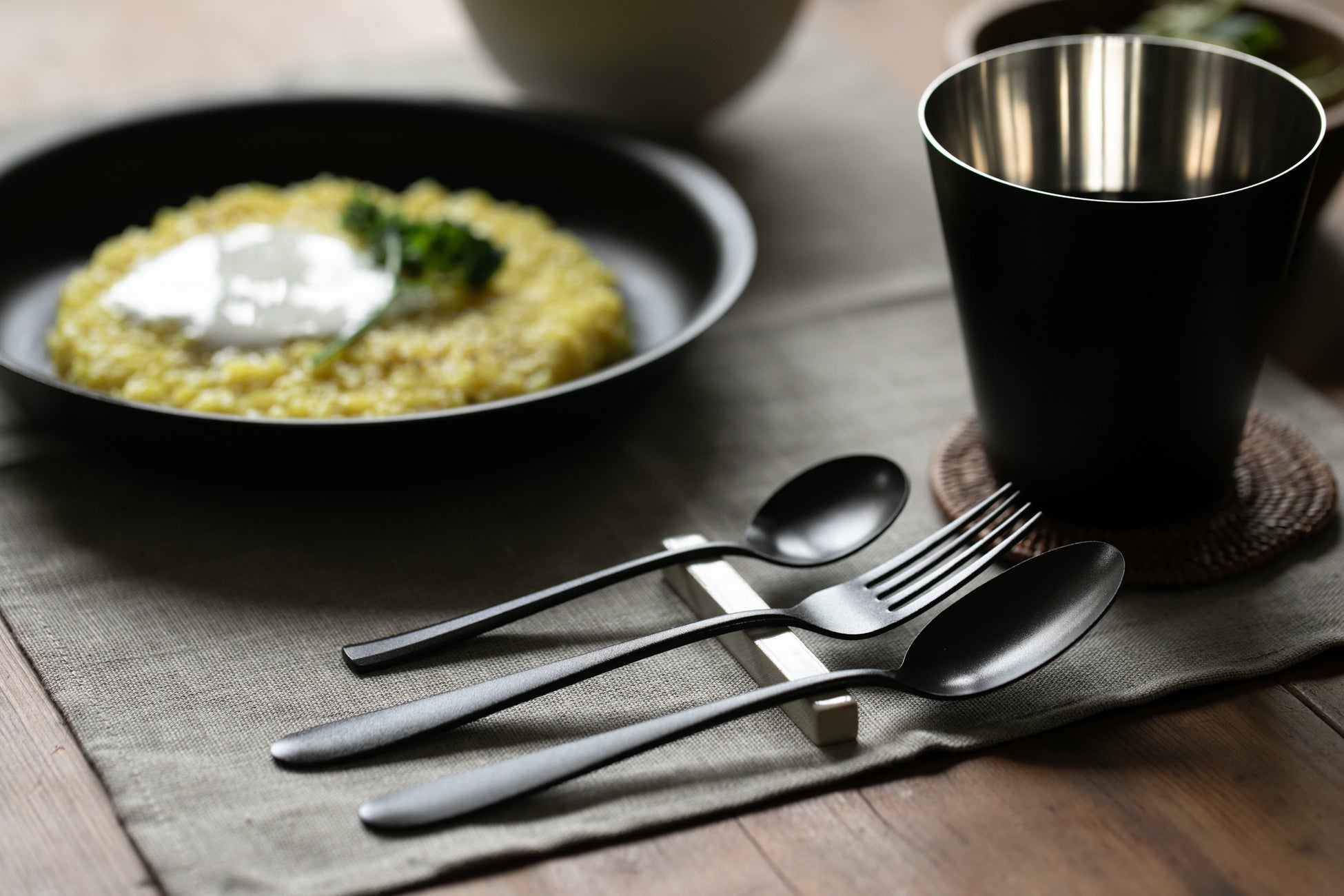 陶器、磁器、木製、ガラス、どんな器とも相性が良く、どんなシーンにもマッチする『黒染めカトラリー』