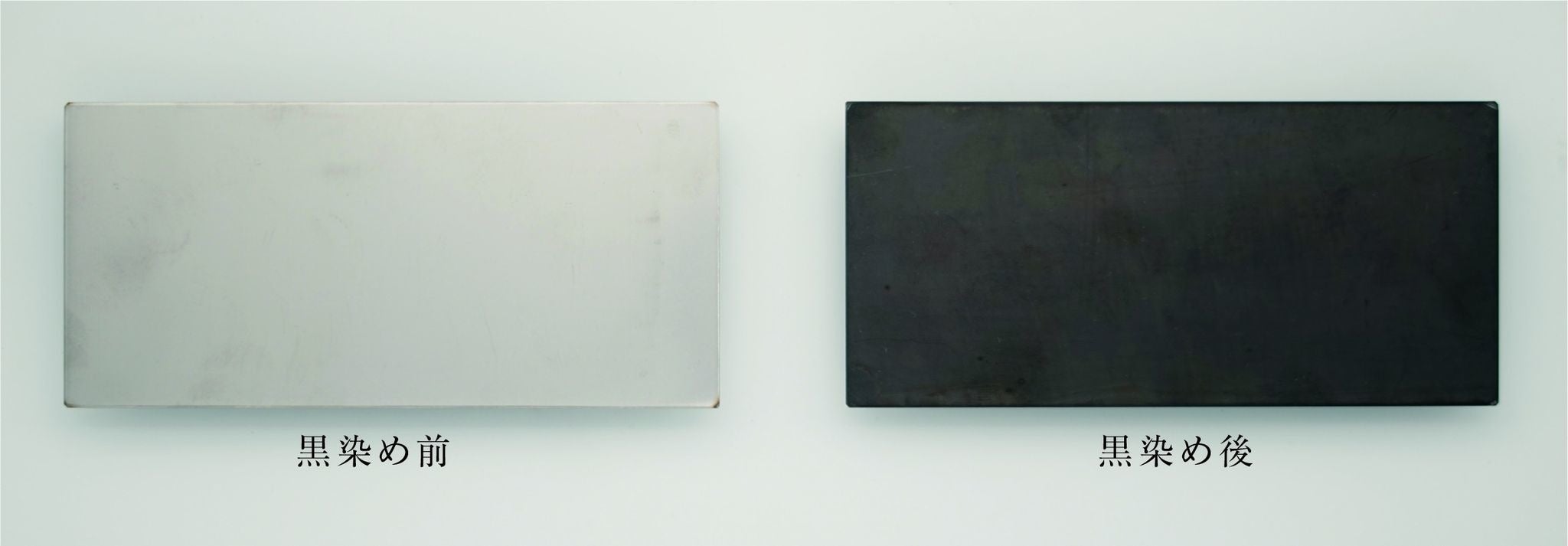 方法としては、黒染め液を煮立て、その中に金属を入れ、化学反応を起こして黒く染めます。