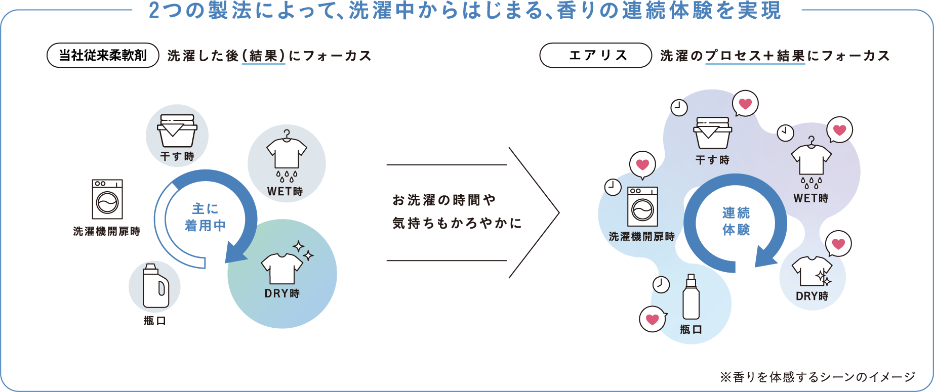 ・2つの製法によって、洗濯中からはじまる、香りの連続体験を実現
