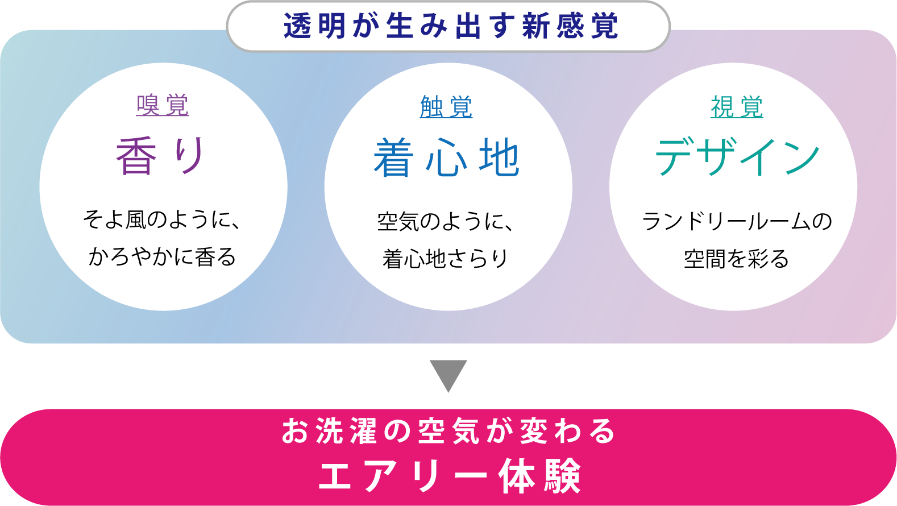 仕上がりだけでなく、お洗濯中の「気持ち」と「空気」が変わる“エアリー体験”を、3つの新感覚、