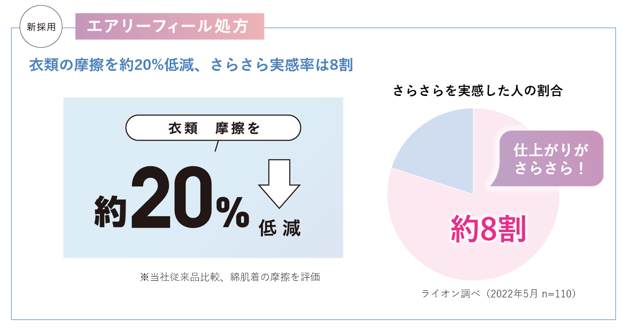 開発成分「特殊シリコーン」を新たに採用する事で、これまで実現できなかった「さらりとした着心地」を実現。