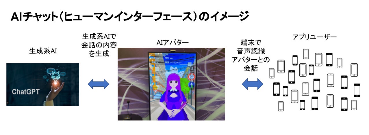 当社はメタバース事業を展開します。第一弾としてメタバース内でキャラクタのアバターとAIを組み合わせたヒューマン・インターフェースのプロダクトを開発しています。『対話型の生成系AIのAPI機能を使った音声認識』により、リアルな表情で双方向に会話ができる3D・VRチャットアプリを開発・提供します。