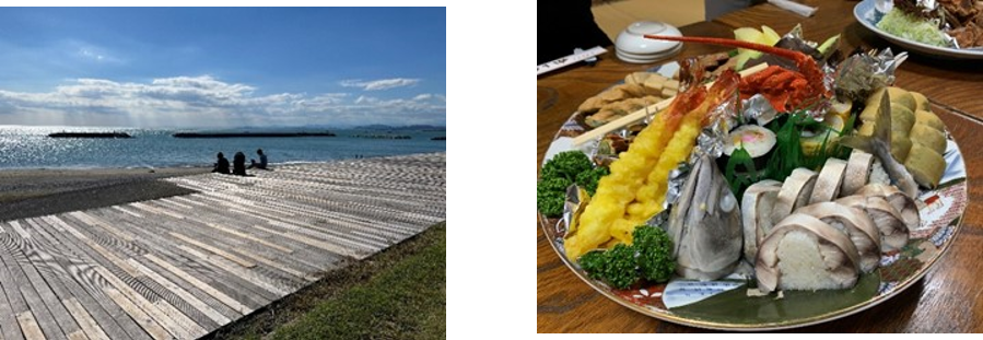 この度のワーケーションでは、2022年10月18日(火)から10月21日(金)まで、香南市の海の公園「ヤ・シィパーク」を主な拠点とし、海の見えるカフェ「mana*mana」や「海洋堂スペースファクトリーなんこく」などをワークプレイスとして活用し、ワーケーションを実施しました。ワークプレイス周辺には、地元食材を活用した老舗料理店や、商業施設などが隣接しており、仕事の合間に地元の特産品を手軽に楽しむことができます。また、レンタサイクルなどのサービスも充実しており、サイクリングやマリンスポーツなどのアウトドアアクティビティも楽しむことができます。
